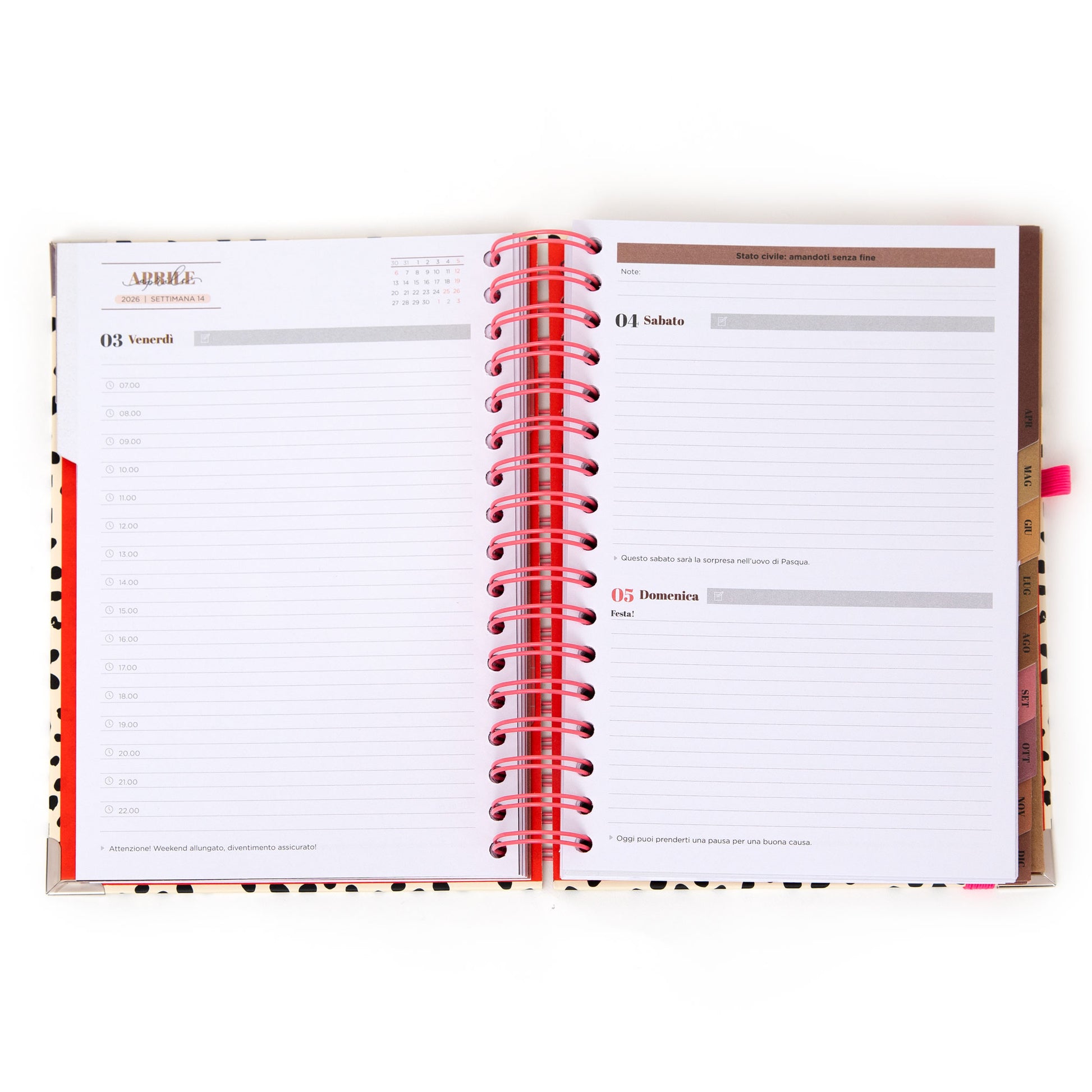 Agenda stile Office di Mr. Wonderful, un disegno un po' più sobrio e misurato rispetto al nostro stile più classico, per cui piacerà tantissimo a un pubblico più adulto. Con organizzazione giornaliera, va da gennaio a dicembre 2026. Questa agenda contiene:
