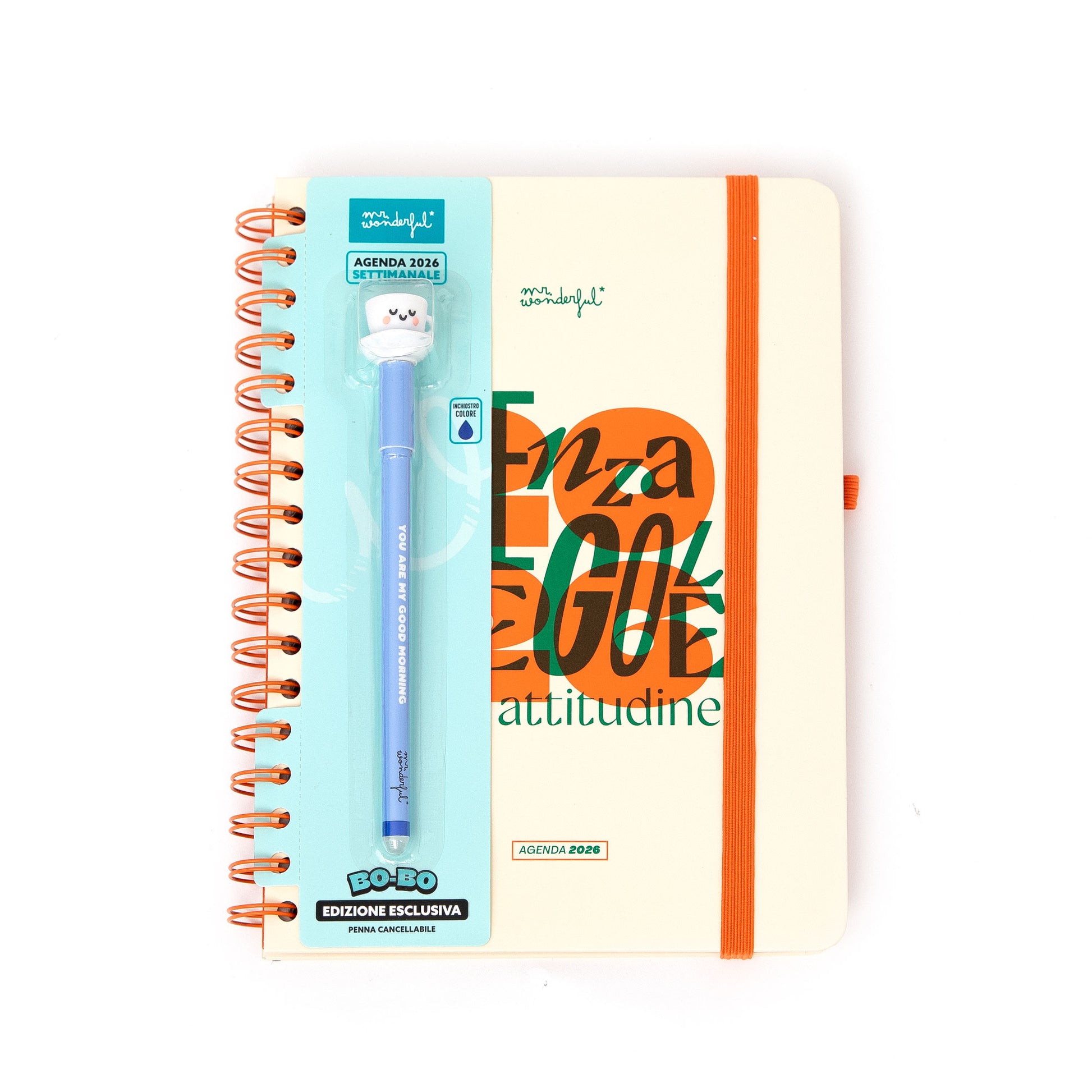 Agenda stile Office di Mr. Wonderful, un tipo di disegno un po' più sobrio e misurato rispetto al nostro stile più classico, per cui piacerà tantissimo a un pubblico più adulto. Con organizzazione settimanale, va da gennaio a dicembre 2026. Questa agenda contiene: