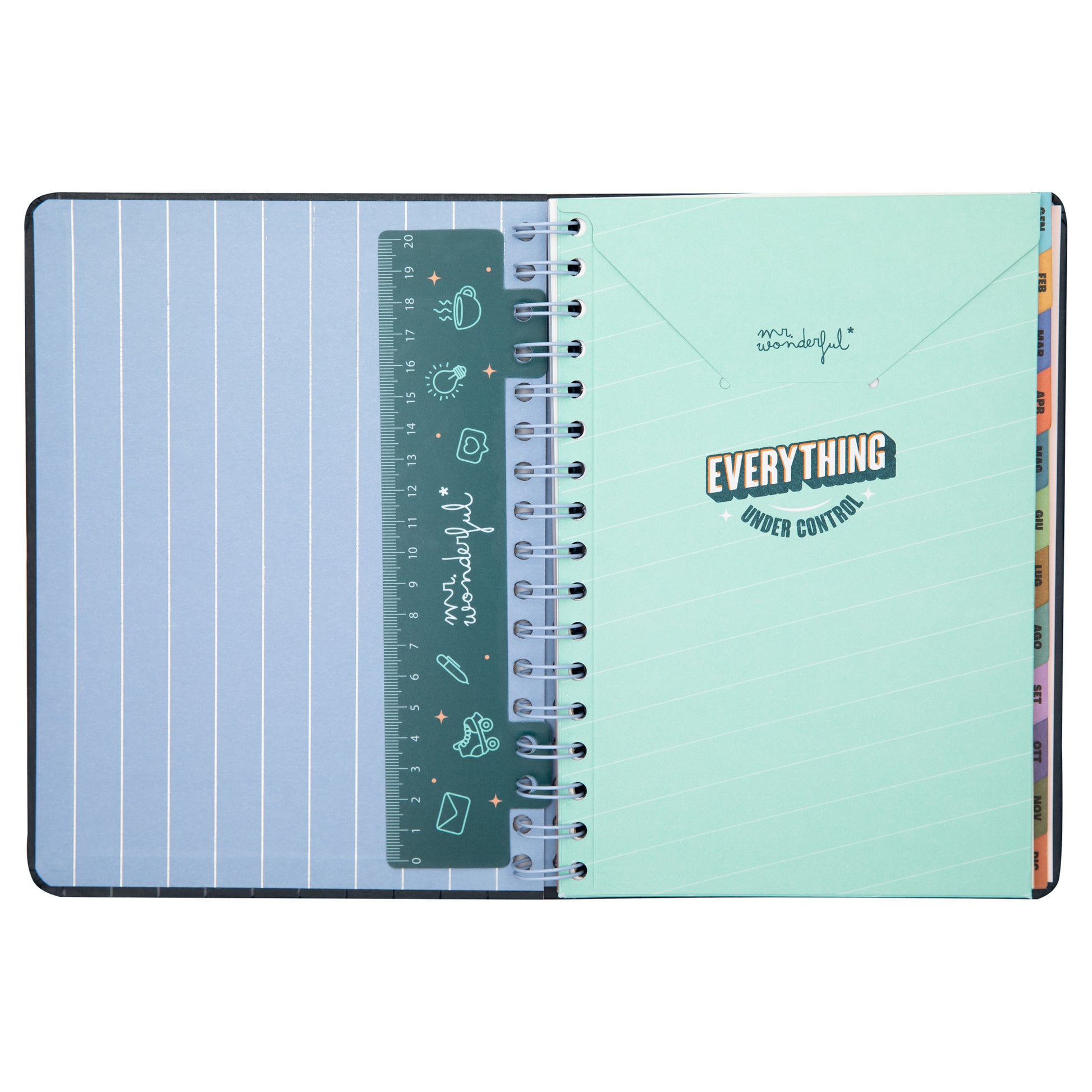 Agenda in stile Wonder di Mr. Wonderful, a organizzazione settimanale, va da gennaio a dicembre 2025.