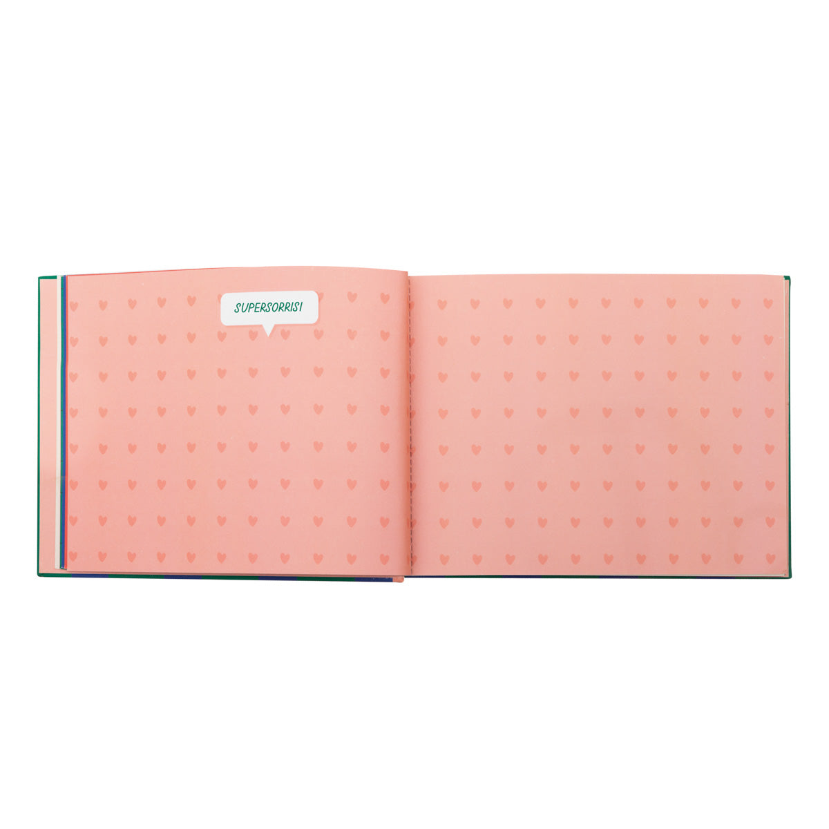 Album fotografico con finitura in tessuto all'esterno, con un messaggio sulla copertina che lo rende ideale da regalare al o alla partner, ma abbastanza neutro da funzionare anche con amici e amiche.