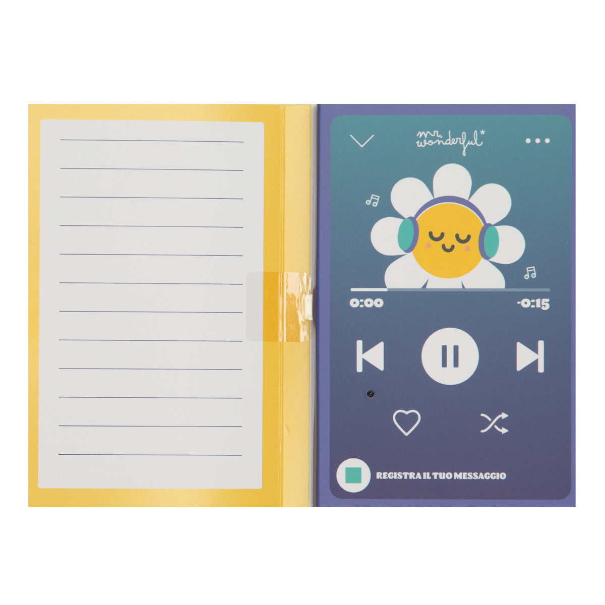 Ogni volta che si aprirà il biglietto si ascolterà il messaggio, che resterà registrato fino a quando non se ne registrerà uno nuovo. Durata massima: 15 secondi.