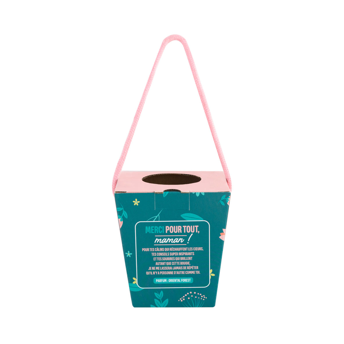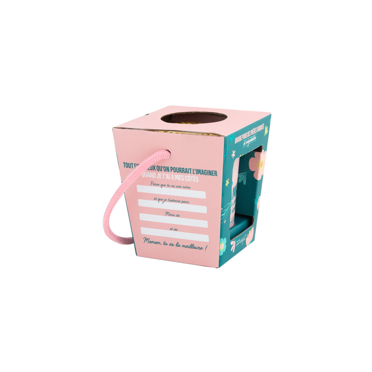 La cire de la bougie et 100 % végétale, parce que nous prenons soin de la planète aussi bien que toi de ta maman. Et pour couronner le tout, tu trouveras sur la boîte de la bougie un petit texte à compléter, pour un cadeau personnalisé et rempli d’amour.