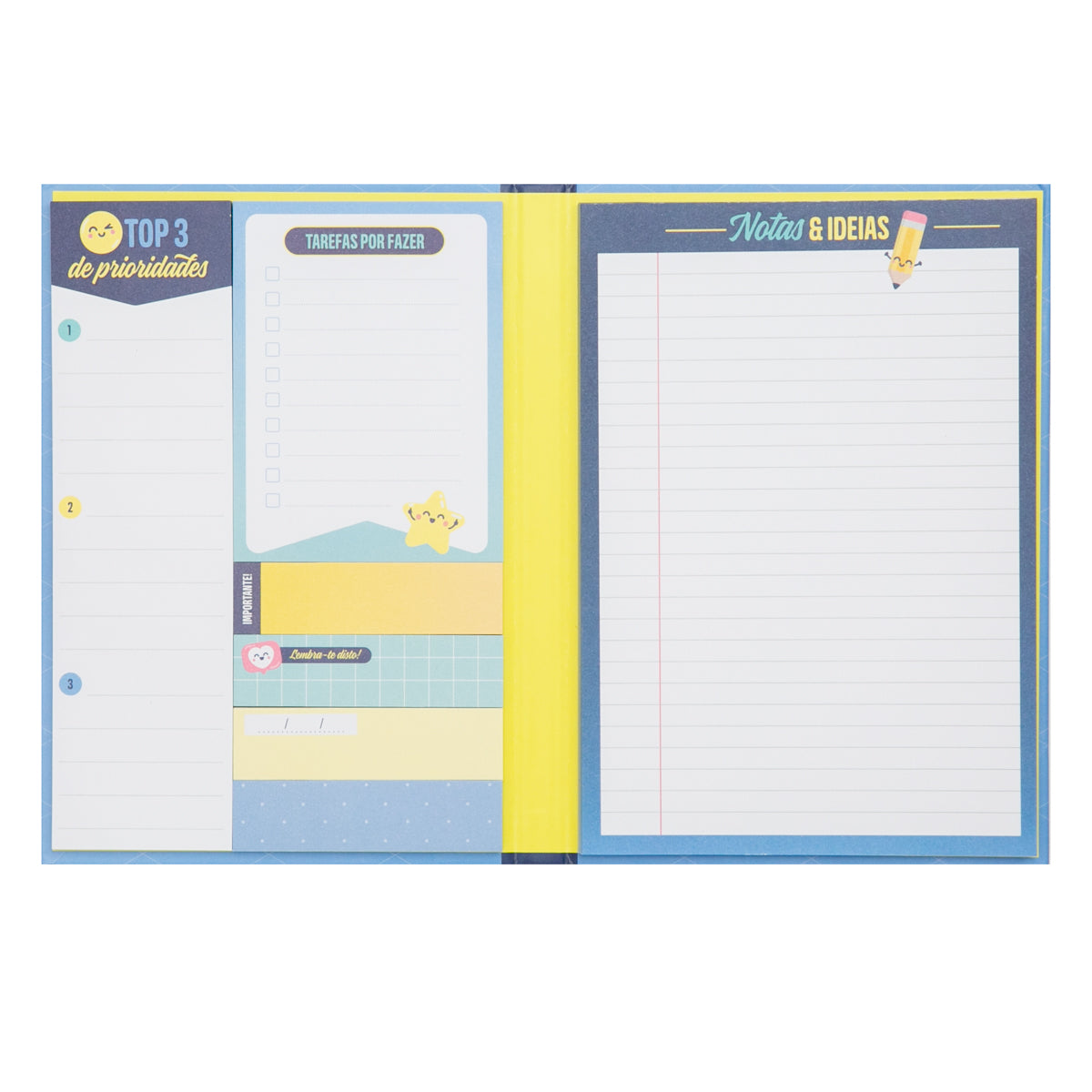 Queremos facilitar-te o mais possível a árdua tarefa de teres de estudar com este fabuloso caderno com bloco de notas e notas adesivas no seu interior.