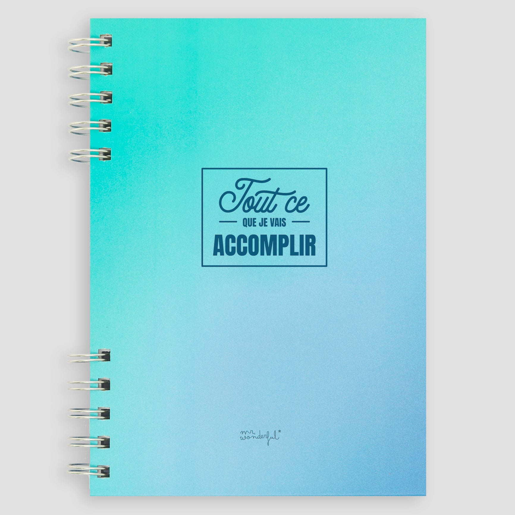 Cahier A5 bleu - Tout ce que je vais accomplir