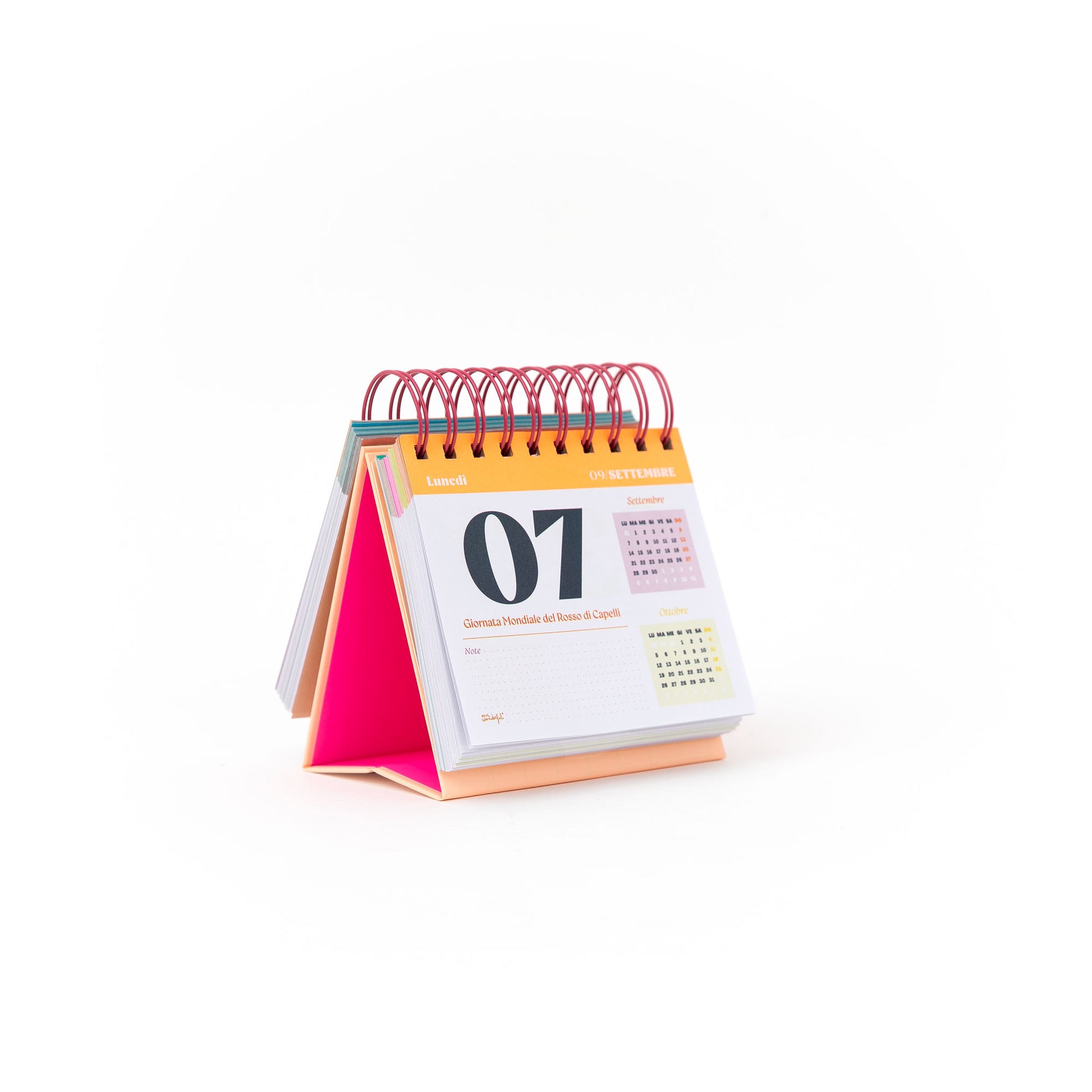 Calendario da tavolo con una pagina al giorno per tutto l’anno, progettato in modo che i primi 6 mesi siano in un senso e, arrivati a metà anno, basta capovolgerlo per vedere i 6 mesi successivi. Ogni giorno troverai una Giornata Mondiale, Internazionale o di apprezzamento davvero sorprendente.