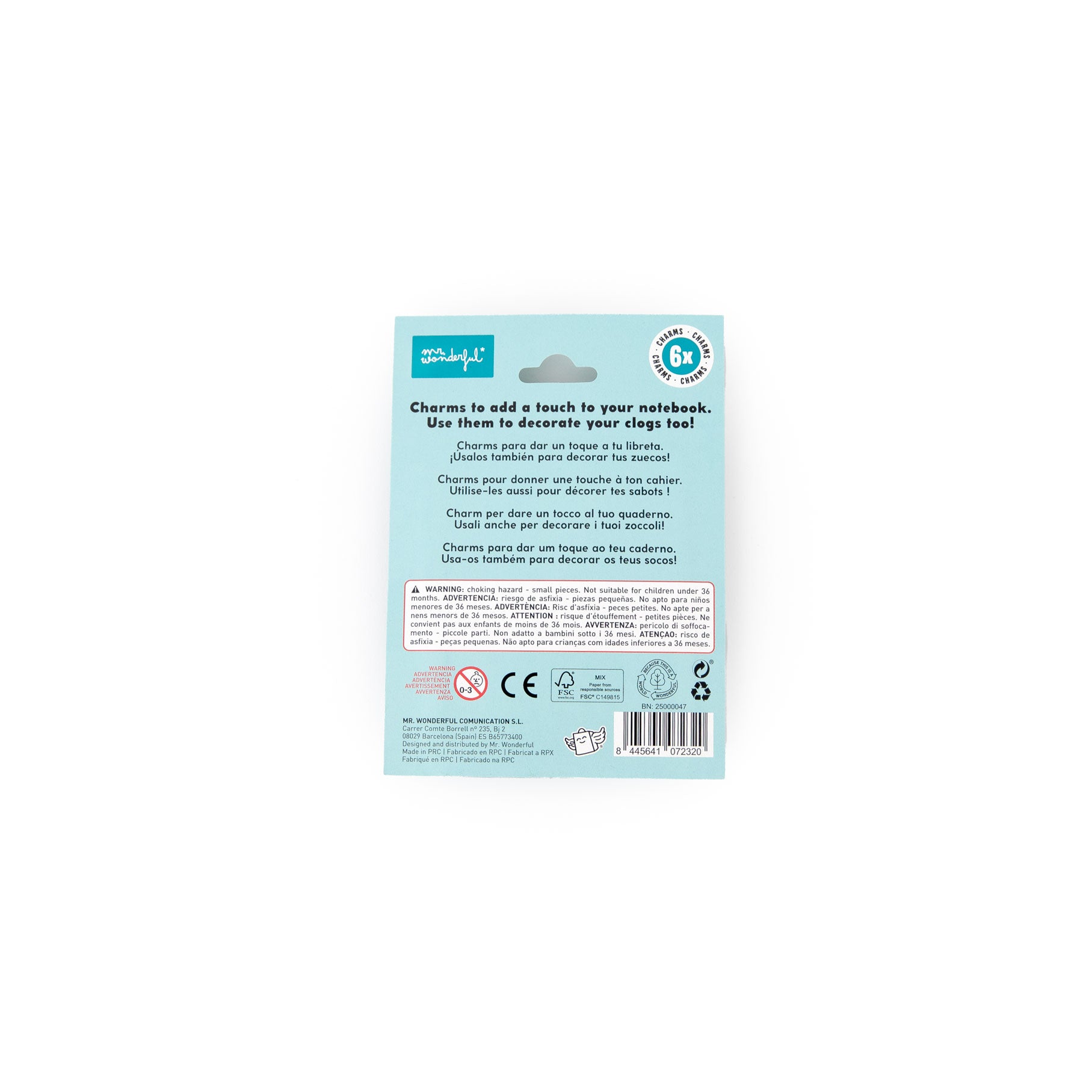 Set di 6 charm in gomma per decorare i quaderni inclusi in questa collezione. Possono anche essere usati per personalizzare zoccoli tipo Crocs.