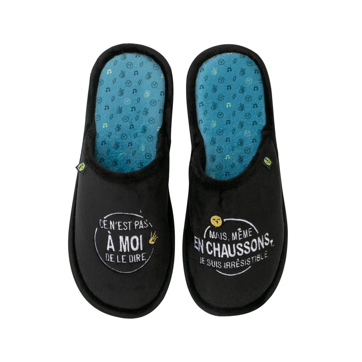Ce n’est pas à toi de le dire, mais après tout, si c’est la vérité, pourquoi s’en priver. Oui, n’aie pas honte de le dire haut et fort : tu es irrésistible ! Quel est ton secret ? Chez Mr. Wonderful, nous pensons que pour être au top, que ce soit niveau forme ou simplement pour avoir bonne mine, il est nécessaire de prendre du repos. Voilà pourquoi nous te proposons cette superbe paire de chaussons Mr. Wonderful. Parce qu’après être parti à la conquête du monde toute la journée, rien de plus normal que d’en avoir plein les pieds. Une fois que tu les auras, tu ne penseras plus qu’à une chose : enlever tes chaussures et enfiler tes super chaussons pour faire une pause et recharger tes batteries. Ils sont tellement moelleux et doux que tes pieds te remercieront. Et tu verras qu’après ce repos bien mérité, tu seras d’autant plus resplendissant. En plus, grâce à leur message partagé entre les deux chaussons, même quand tu seras en mode pause canapé, tu continueras d’être irrésistible. Bref, ces chaussons sont faits aider les personnes irrésistibles à continuer de l’être même en se reposant. Tu viens de trouver chausson à ton pied !