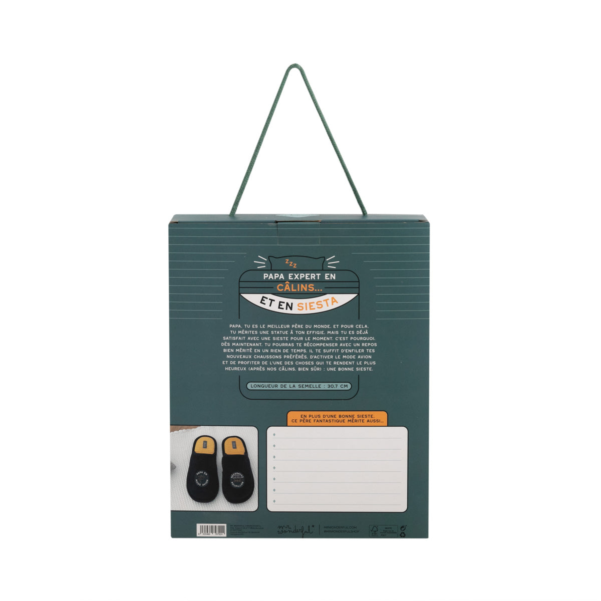 Ton père adore faire plein de choses tout au long de la journée, mais il arrive un moment très spécial où il se met en mode avion jusqu’à ce qu’il termine sa sieste. Chez Mr. Wonderful, nous avons voulu faire un hommage au plus grand expert de la sieste de tout l’univers. Après un très long casting avec des milliers de participants et quelques désaccords parmi les membres du jury, nous avons conclu que celui qui mérite un diplôme de professionnel en la matière, c’est le monsieur qui occupe le canapé tous les après-midi, gardant un territoire que même les meilleurs soldats romains ne pourraient conquérir. Qu’il pleuve, qu’il vente ou qu’il neige, rien n’empêchera le roi de la maison de se diriger vers son objectif en début d’après-midi, se laissant guider par ces chaussons vers sa destination : le canapé. Il a déjà résolu plein de problèmes pendant la matinée et il continuera dans l’après-midi, mais personne ne lui enlèvera son cher petit entracte. Il est indispensable que ce petit moment (long) moment de sommeil réparateur ait lieu tous les jours pour que sa bonne humeur soit toujours aussi bonne. Nous adorons voir papa avec ce magnifique sourire d’après-sieste qu’il nous adresse tous les après-midis.