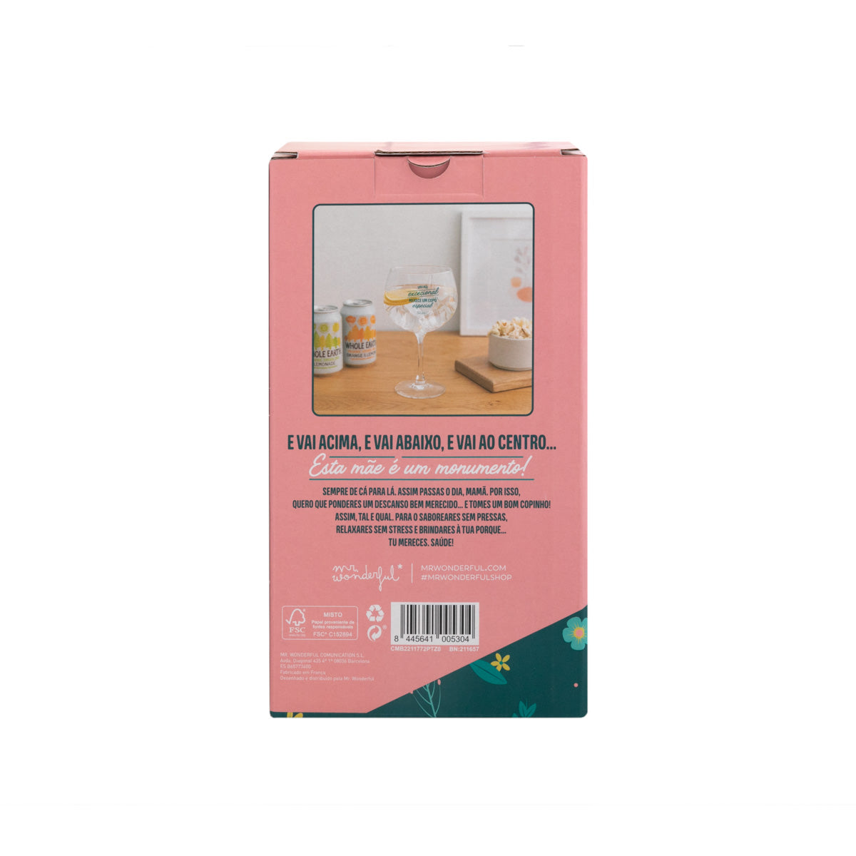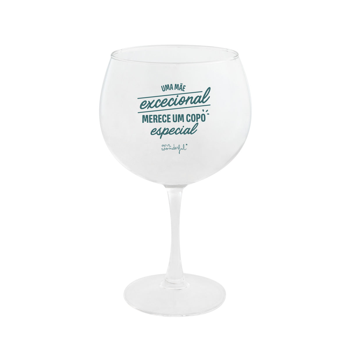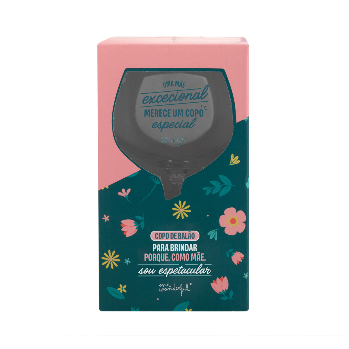 Há mães fantásticas, claro, mas é que esta tua mãe é um docinho e merece um bom copinho. Tu sabe-lo bem e a Mr. Wonderful também, que entende um montão de tudo o que está relacionado com as mães mais fixes. Como temos isso tão claro, aplicámos todo o nosso carinho no desenho deste copo de balão fabricado em vidro, com uma capacidade de 700 ml e que, apesar de ter sido feito para que a bebida se mova com graça no seu interior, é também bastante resistente para entrar na máquina da louça e sair como novo uma e outra vez, sempre preparado para o próximo brinde. O facto de ter sido fabricado em França dá-lhe um ar muito distinto, mas também é o primeiro a alinhar em todas as festas e a brindar sem parar. E olha que o copo é espetacular, eh? Então nas mãos da mamã vai ficar ainda mais bonito, porque ela vai decorá-lo com a sua roupa de gala: um chapeuzinho por aqui, uns gelos com forminhas por ali… convertendo um copo de balão com mensagem numa obra de arte. Que mãos mais mágicas tem a mamã! Quando dizemos que a tua mãe é demais… é porque é mesmo!