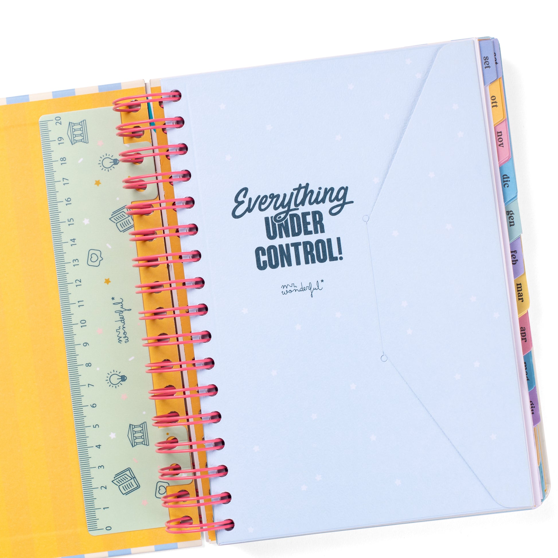 Diario in stile Wonder di Mr. Wonderful, con organizzazione giornaliera, va da settembre 2025 a fine agosto 2026. Questo diario contiene: