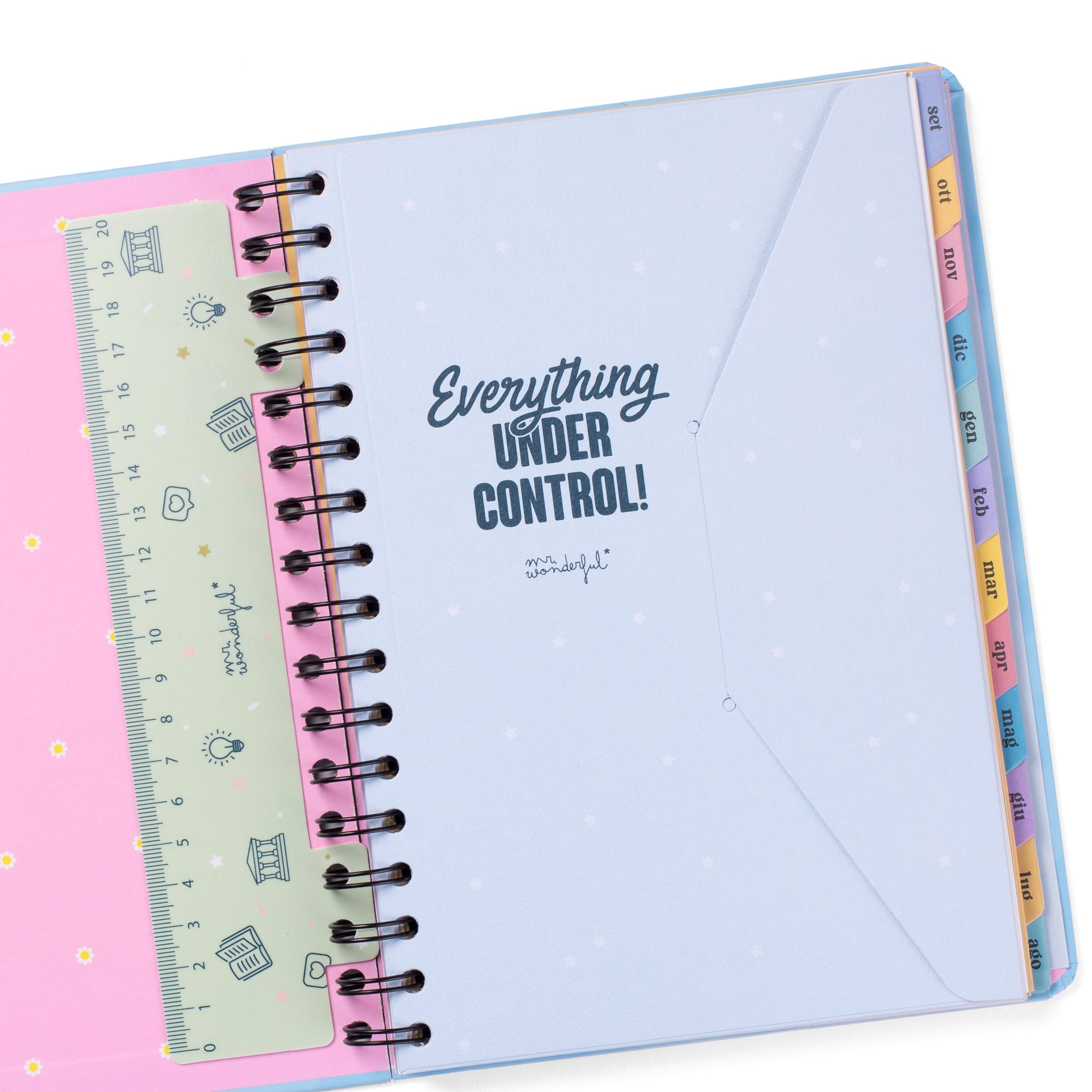 Diario in stile Wonder di Mr. Wonderful, a organizzazione settimanale, va da settembre 2025 a fine agosto 2026. Questo diario contiene: