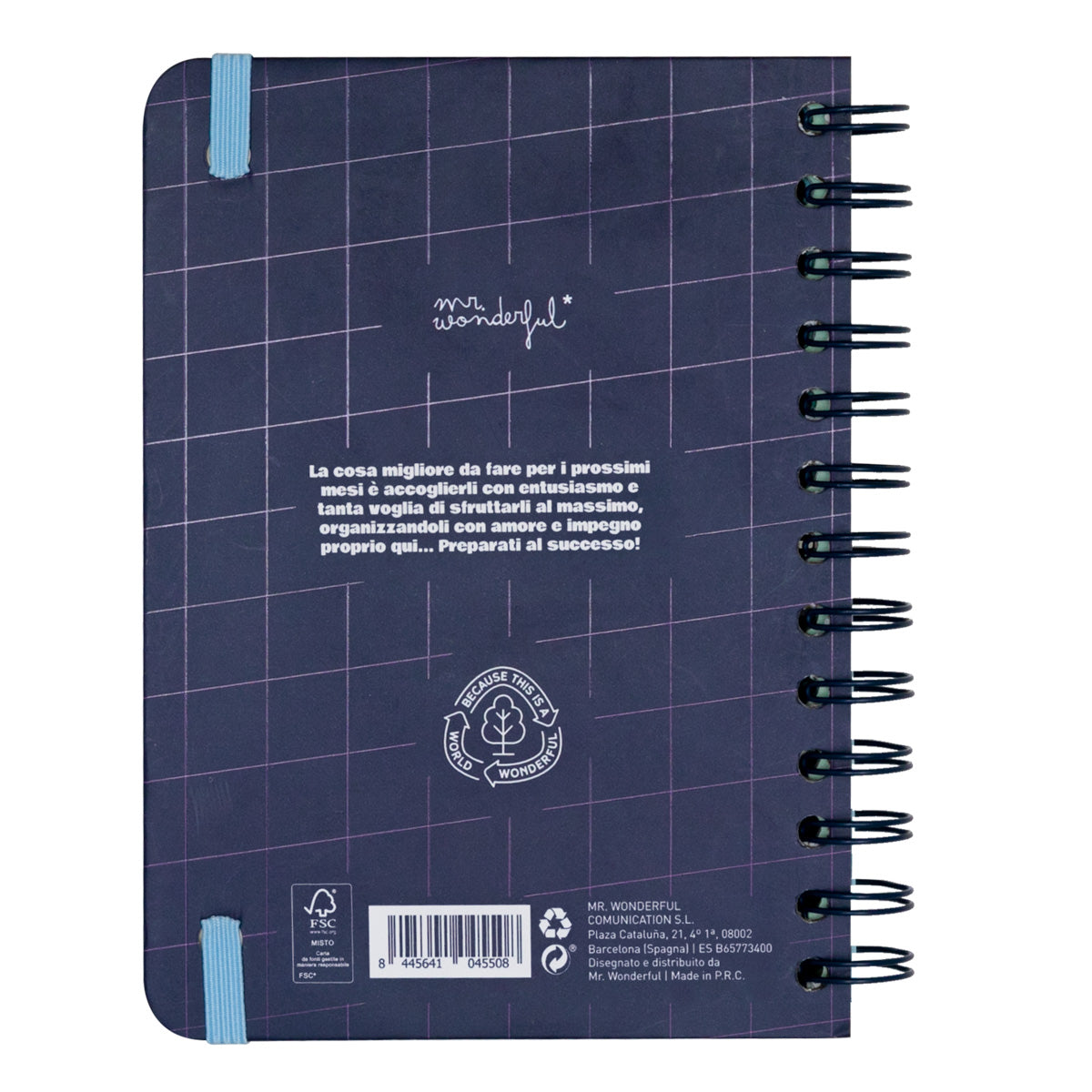 Diario scolastico piccolo in stile Wonder di Mr. Wonderful, ideale da portare sempre con te, nella borsa o nello zaino. Con organizzazione settimanale, va da settembre 2024 a fine agosto 2025 e le sue pagine sono prodotte con carta certificata FSC, che ne garantisce la provenienza da foreste gestite in modo responsabile.