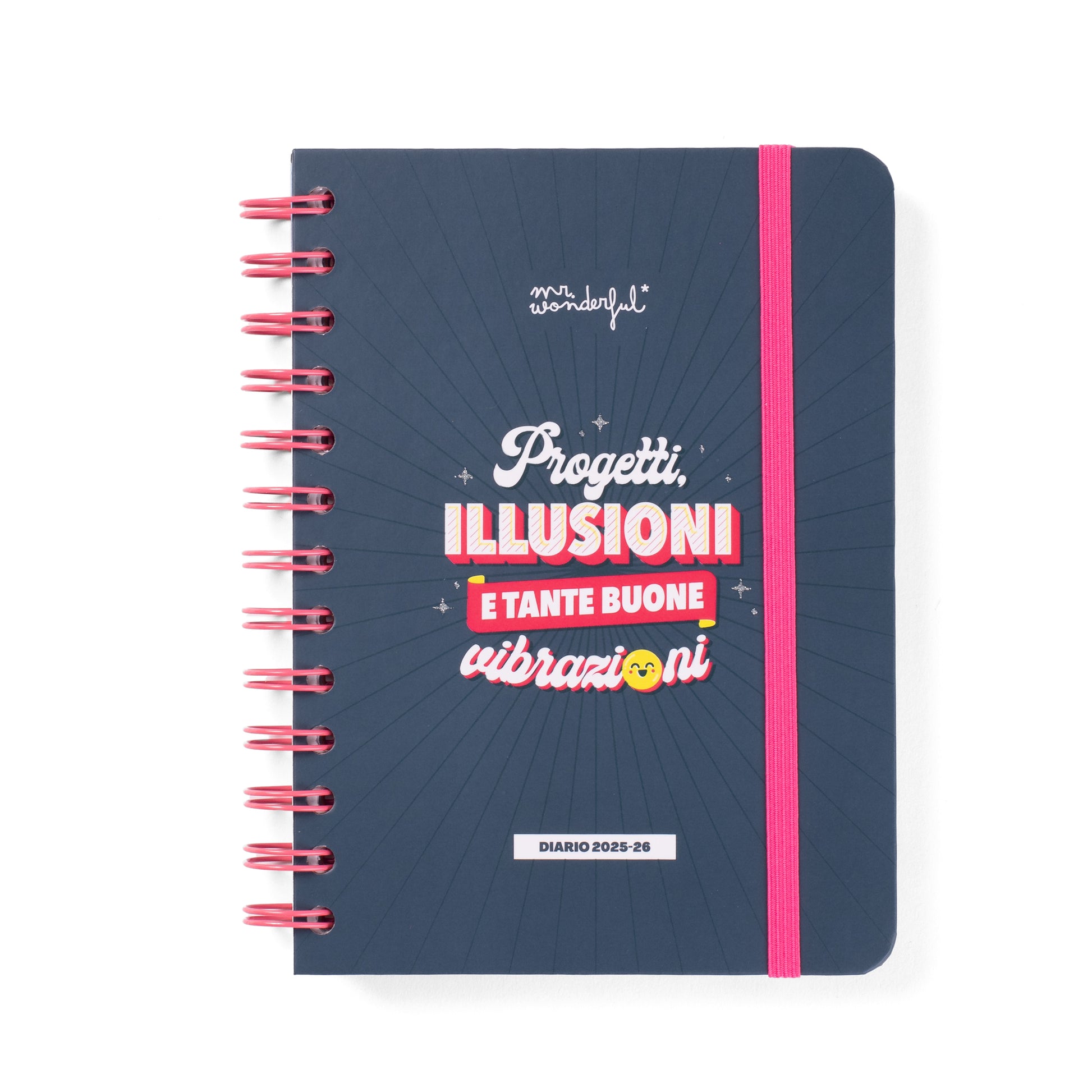 Diario piccolo in stile Wonder di Mr. Wonderful, a organizzazione settimanale, va da settembre 2025 a fine agosto 2026. Questo diario contiene: