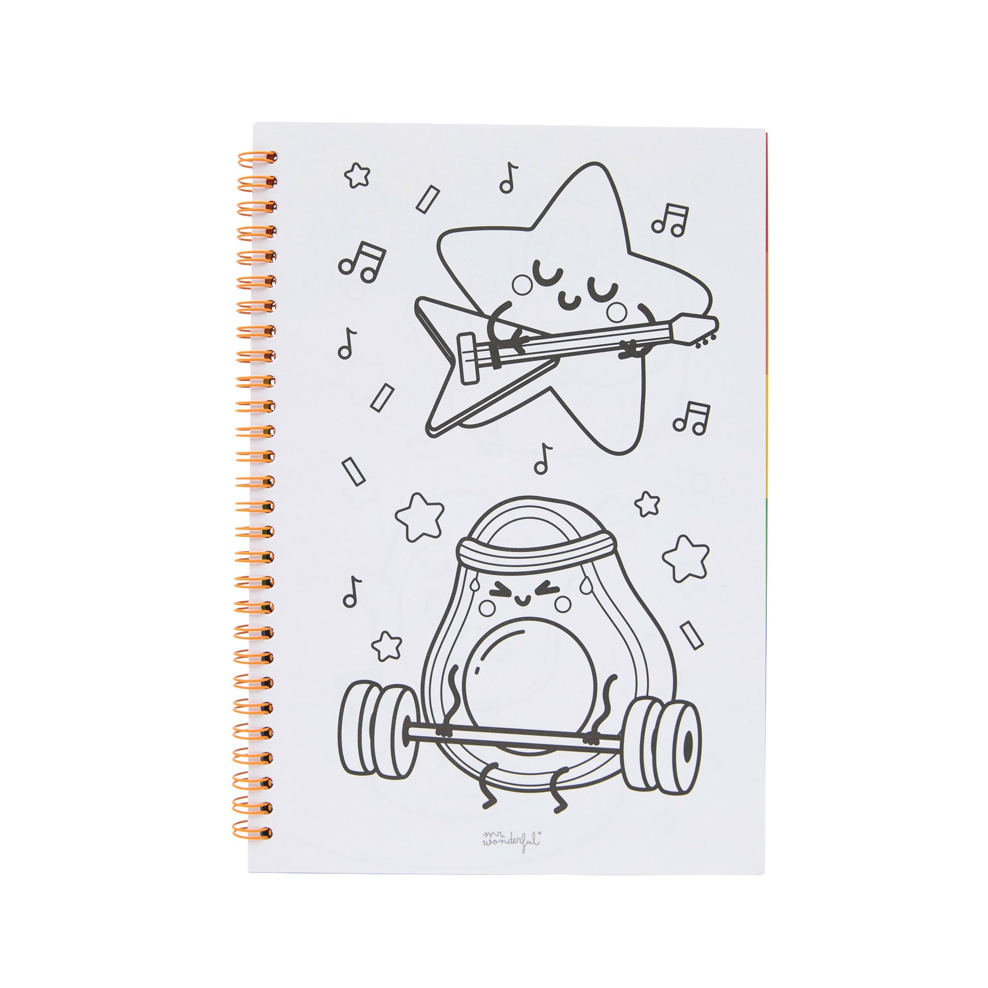 Libro da colorare per bambini e bambine, con 12 pagine piene di sagome dei personaggi Mr. Wonderful. Include anche 5 fogli di adesivi.