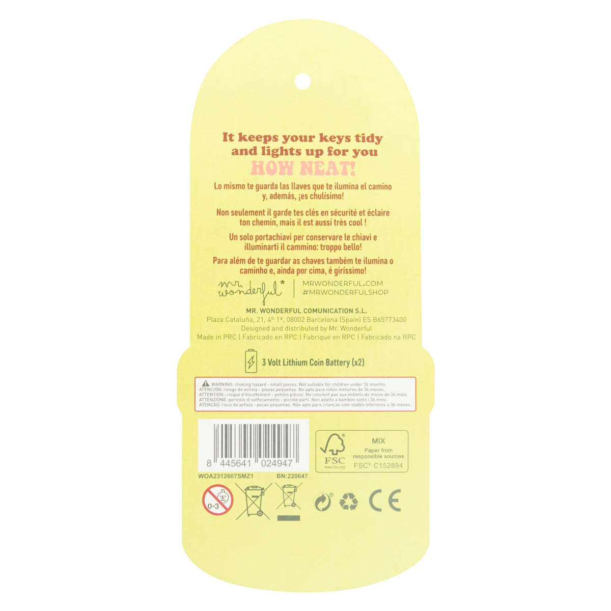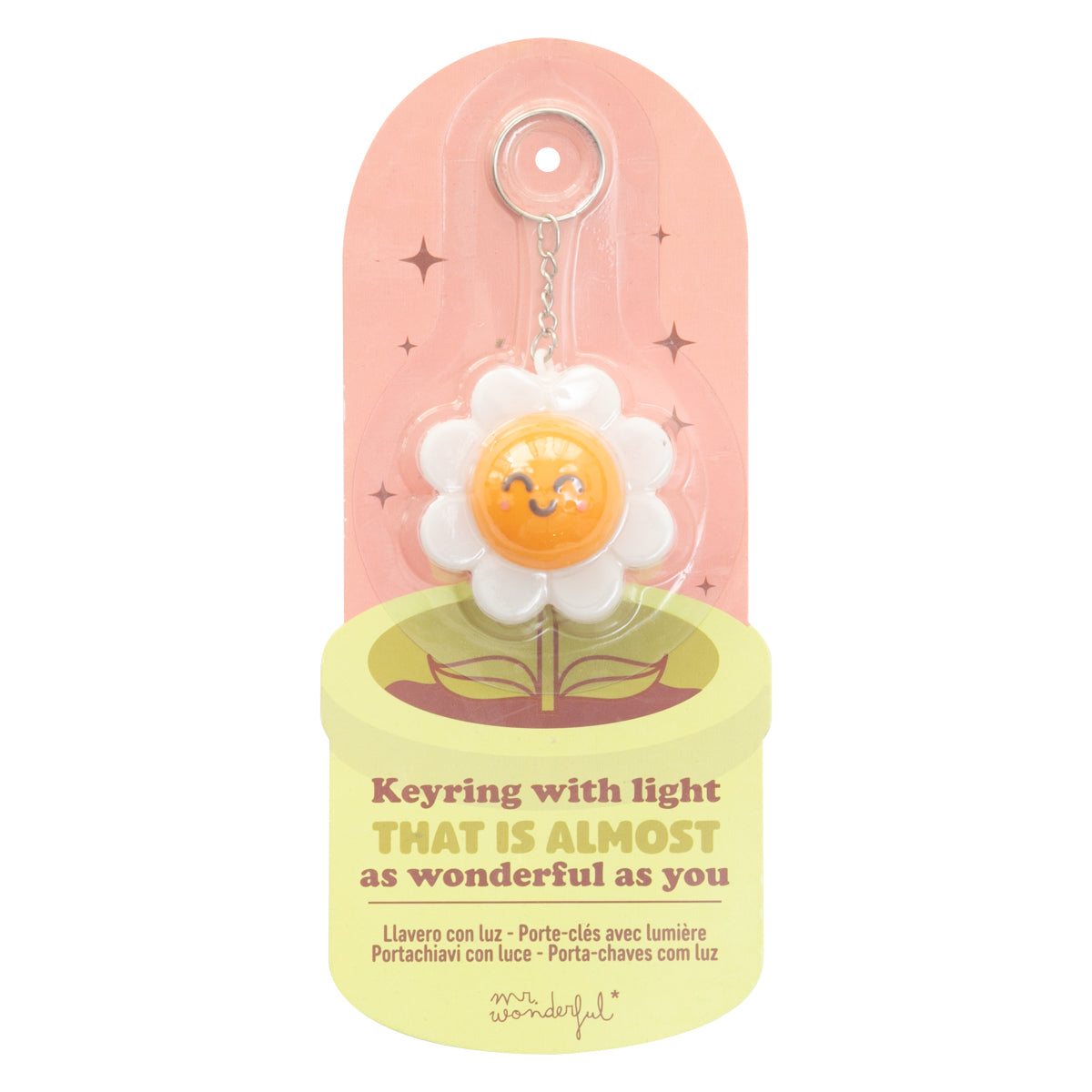 Llavero realizado en metal y PU, con forma de margarita Mr. Wonderful. Incorpora una pequeña luz, lo que le aporta originalidad.