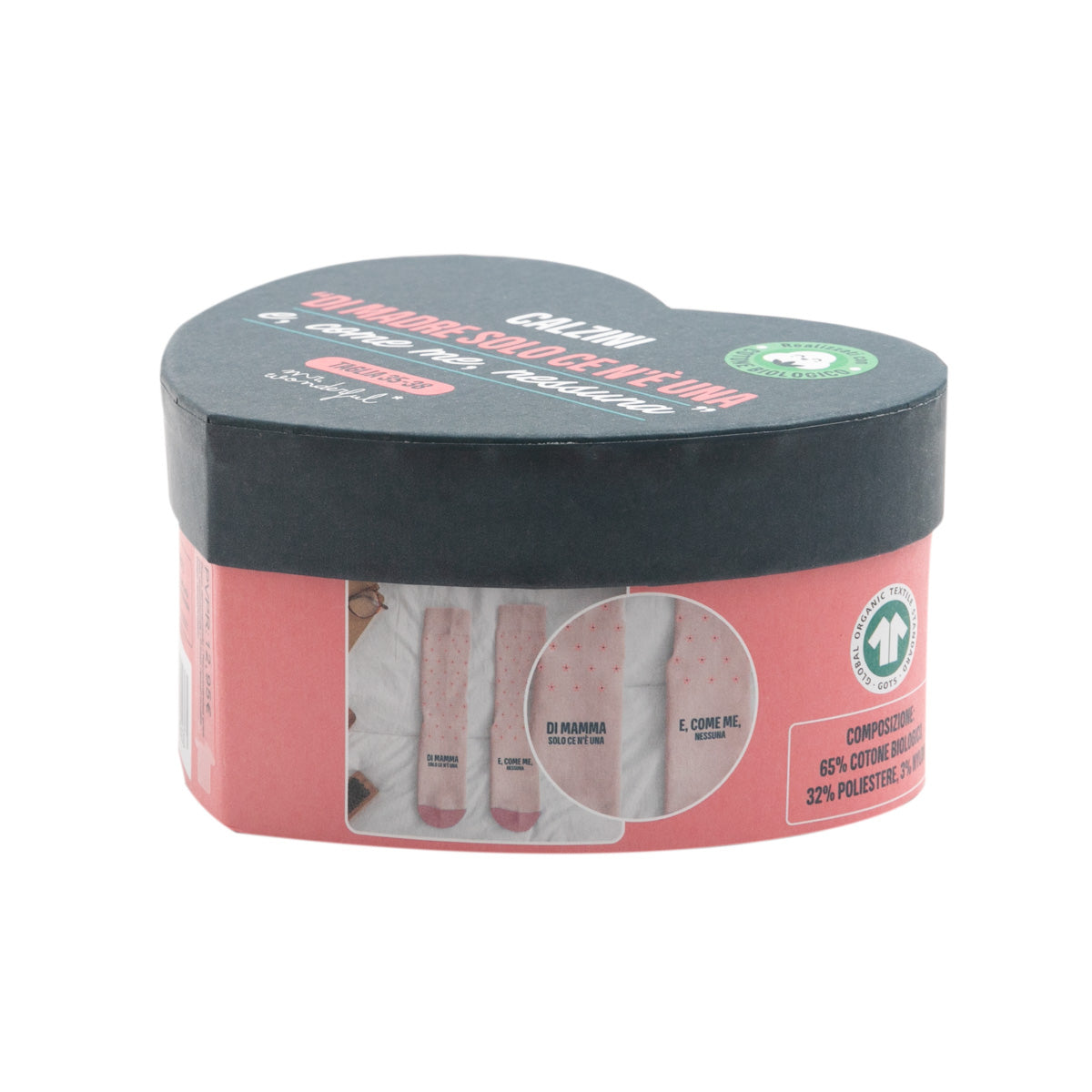 - Meias com mensagem dirigida a mães. A mensagem está dividida entre ambas as meias.