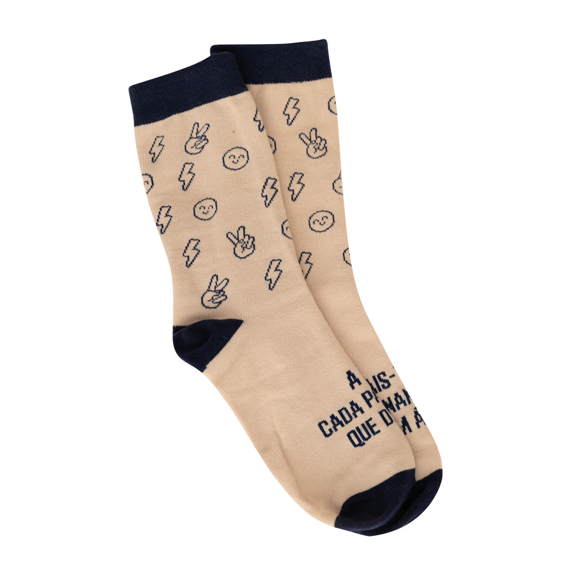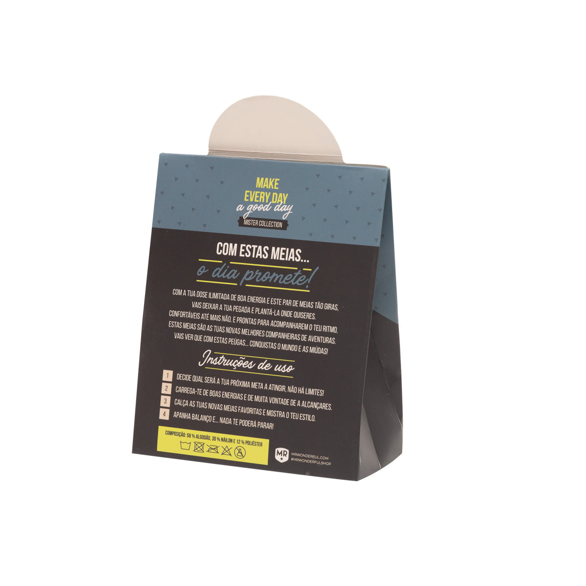 A ti também te conquistaram estas meias desenhadas pela Mr. Wonderful assim que as viste? Já sabíamos que ias adorar tanto como nós. Para além de serem muito confortáveis, são perfeitas para te acompanharem nos teus passeios curtos ou longos, quer seja para ires tomar café ao virar da esquina ou para palmilhar a fundo o teu museu favorito. Vais confirmar como é verdade que, a cada passo que dás, curtes ainda mais. Queremos encher-te de alegria da cabeça aos pés e de certeza que estes dois colegas te arrancam um sorriso logo que o dia comece. Assim dá gosto ir a qualquer lado, com a segurança e por estares preparado para tudo o que der e vier. Uma das suas muitas qualidades é que se adaptam a qualquer circunstância meteorológica e fazem com que te sintas às mil maravilhas quando há um sol radiante e quando as nuvens começam a aparecer. Não só são ideais para ti, como também para alguém que partilhe o teu bom gosto. Ocorre-te um bom candidato para as ofereceres? De certeza que vai ficar supercontente ao abrir um embrulho e encontrar estas meias tão superbonitas para os seus pés. Estão preparadas para dar tudo por tudo!
