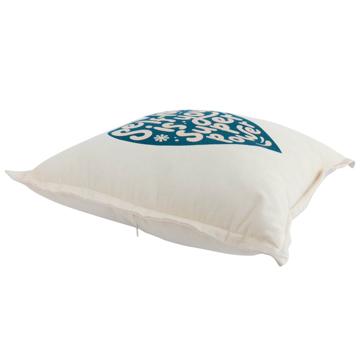 Necéssaire redondo com uma mensagem impressa nele e fecho de correr. Foi fabricado em rPET, um material reciclável obtido a partir da reciclagem de garrafas de plástico PET.