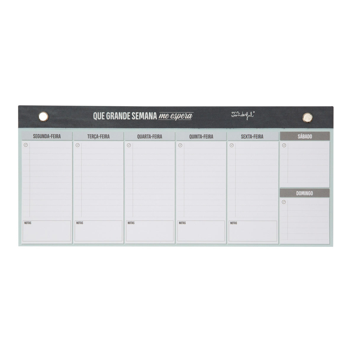 Organizador semanal comprido e estreito, ideal para ter na secretária sem ocupar muito espaço. Contém 60 folhas de papel de 90 g.