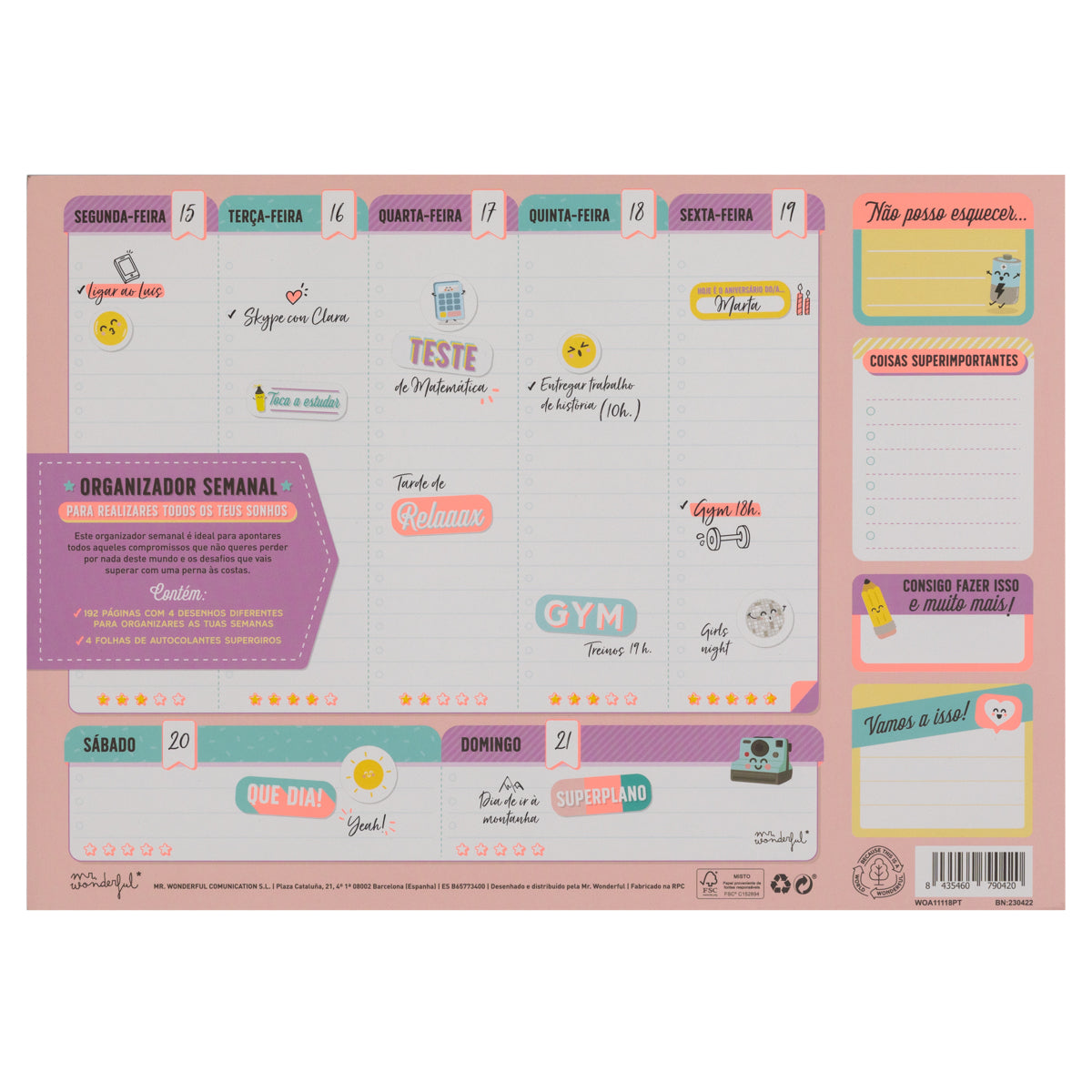 Organizador semanal para realizares todos os teus sonhos
