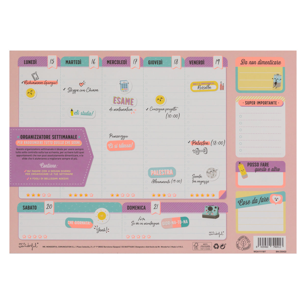 Organizzatore settimanale per raggiungere tutto quello che sogni