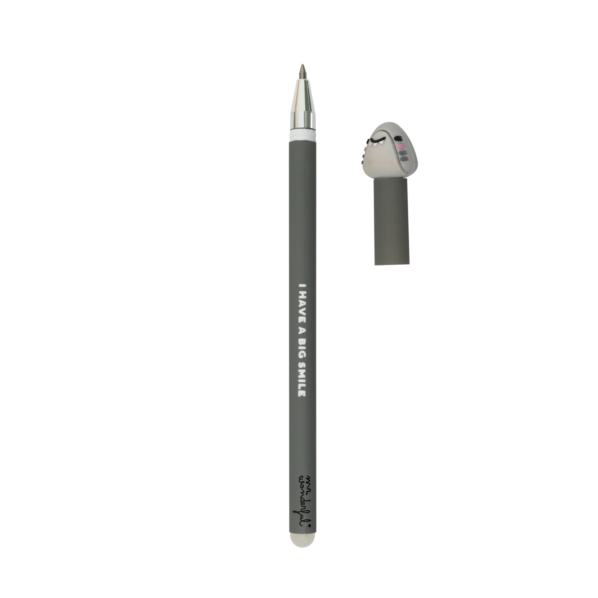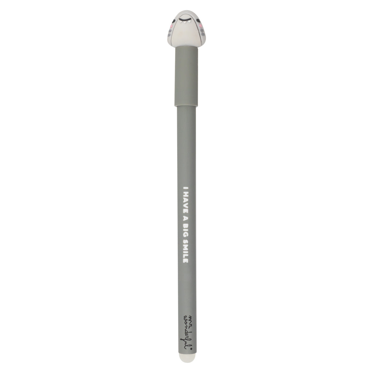 Penna con inchiostro blu cancellabile e lo squalo Ramón su un'estremità.