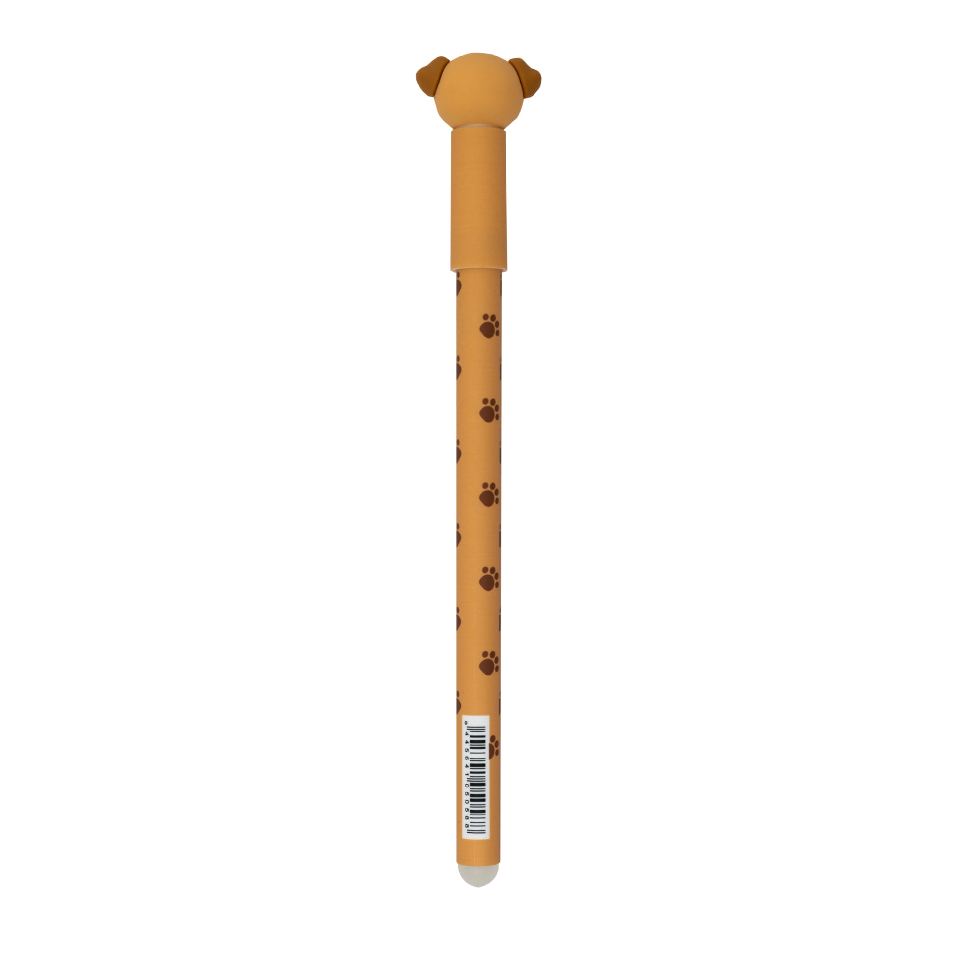 Penna con inchiostro cancellabile blu e il cane Homero su una delle sue estremità.
