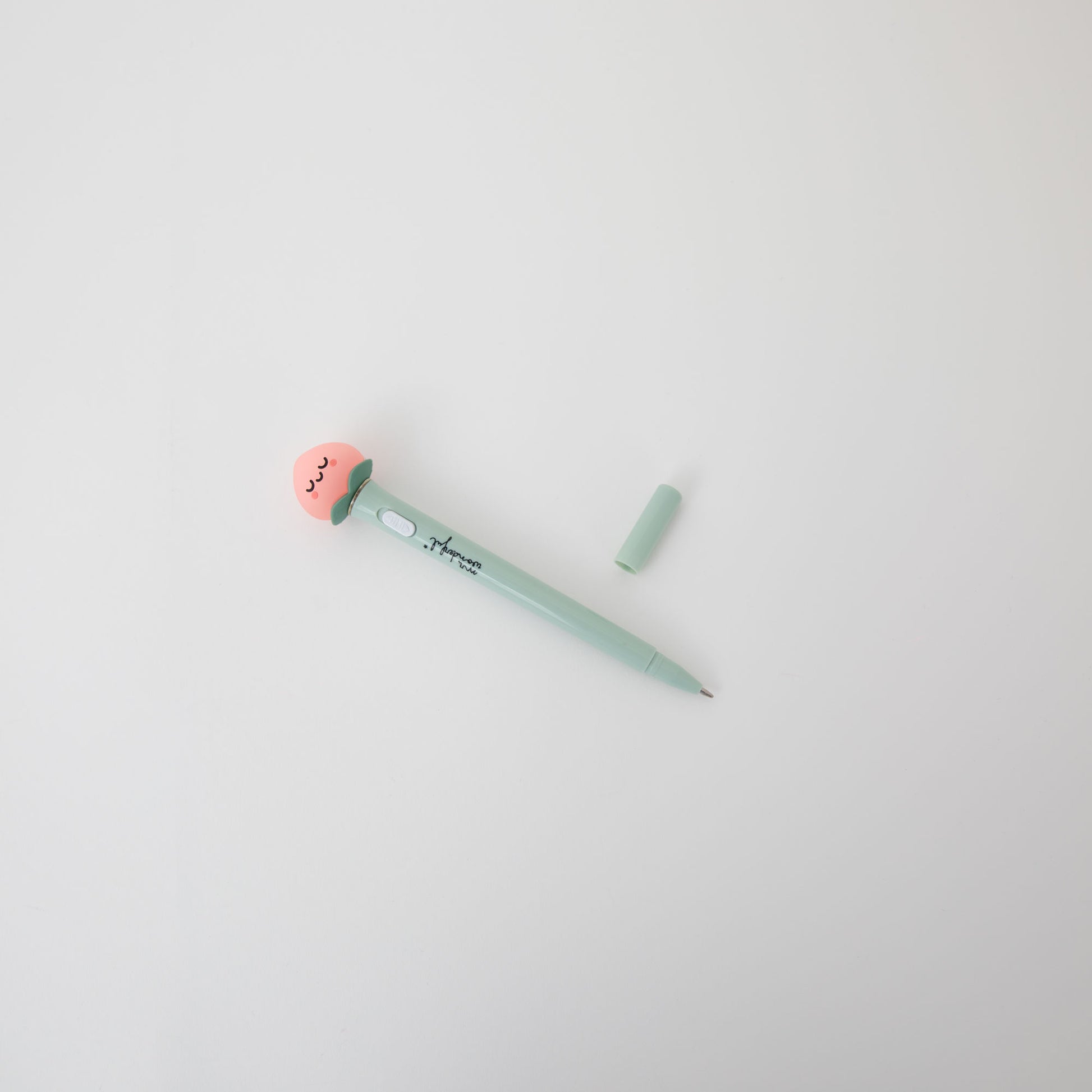 Penna con una simpatica pesca Mr. Wonderful su uno degli estremi, che si illumina quando si aziona l’interruttore situato sul corpo della penna.
