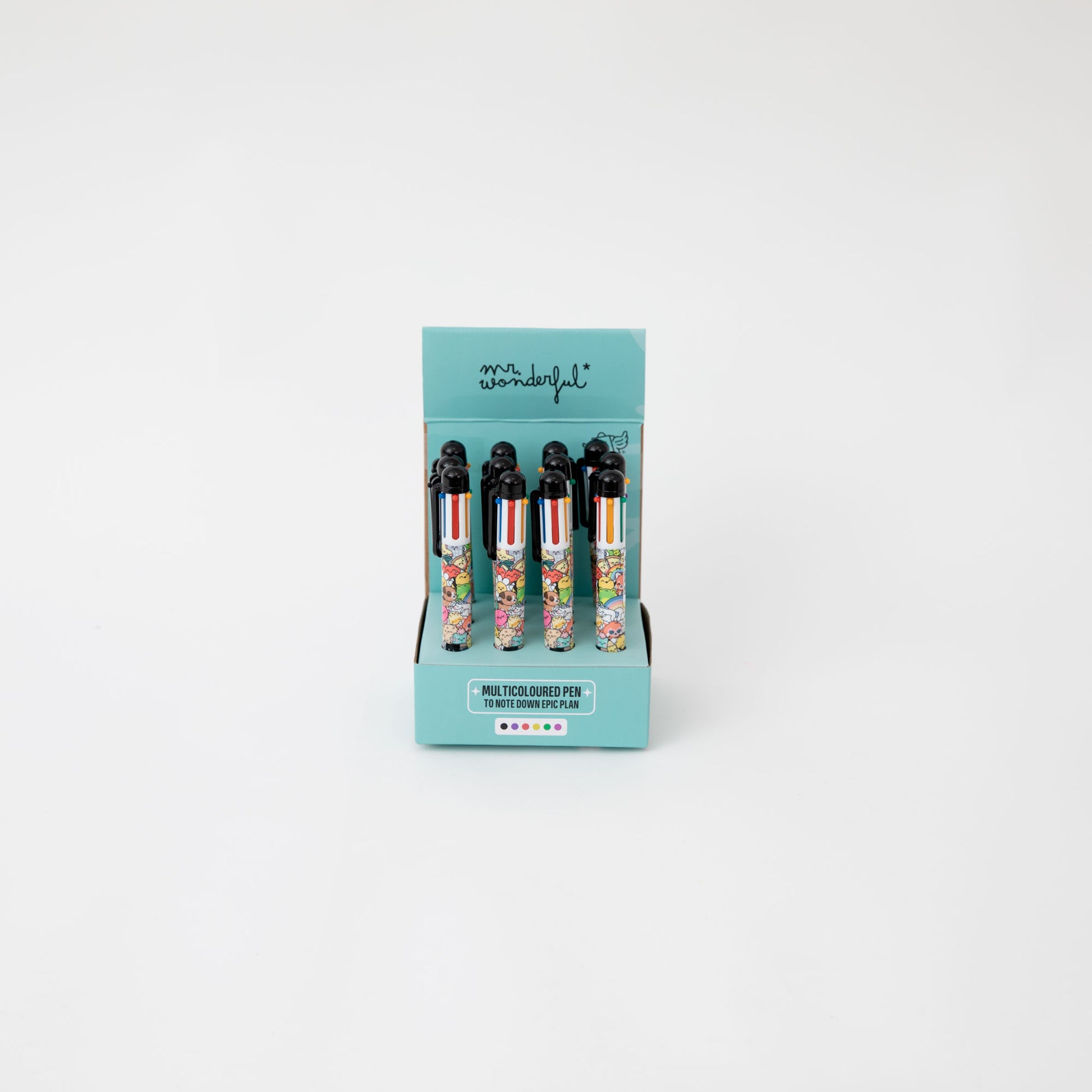Questa penna multicolore di Mr. Wonderful è pura magia nella tua astuccio. Con 6 inchiostri diversi in una sola penna e decorata con alcuni dei nostri personaggi più amati, è perfetta per chi ama scrivere, organizzare e colorare con stile.