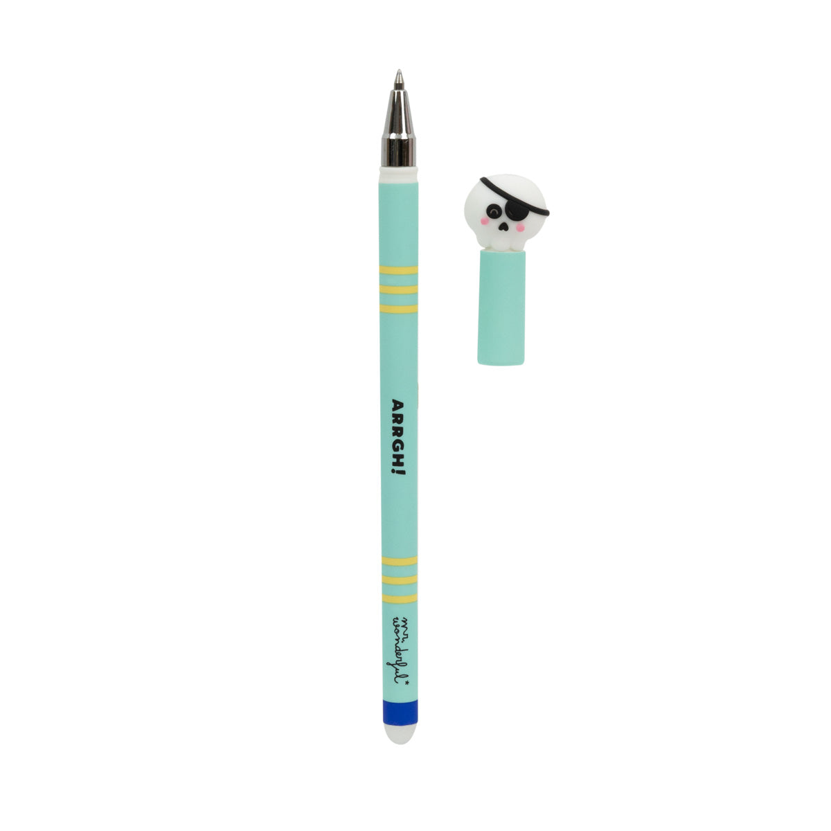 Penne cancellabili Bo-Bo con un divertente teschio pirata Mr. Wonderful su un'estremità.