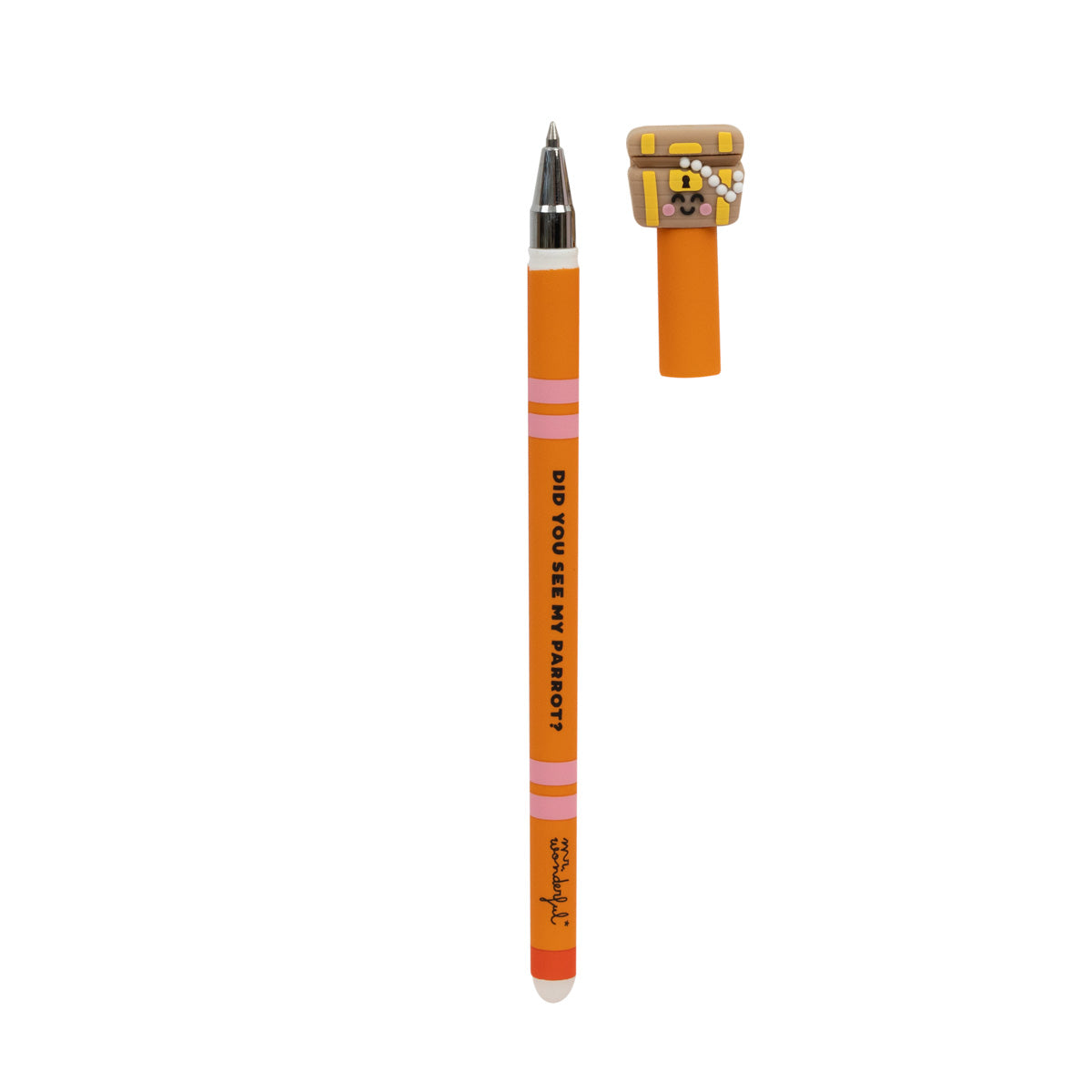 Penne cancellabili Bo-Bo con un divertente scrigno del pirata Mr. Wonderful su un'estremità.