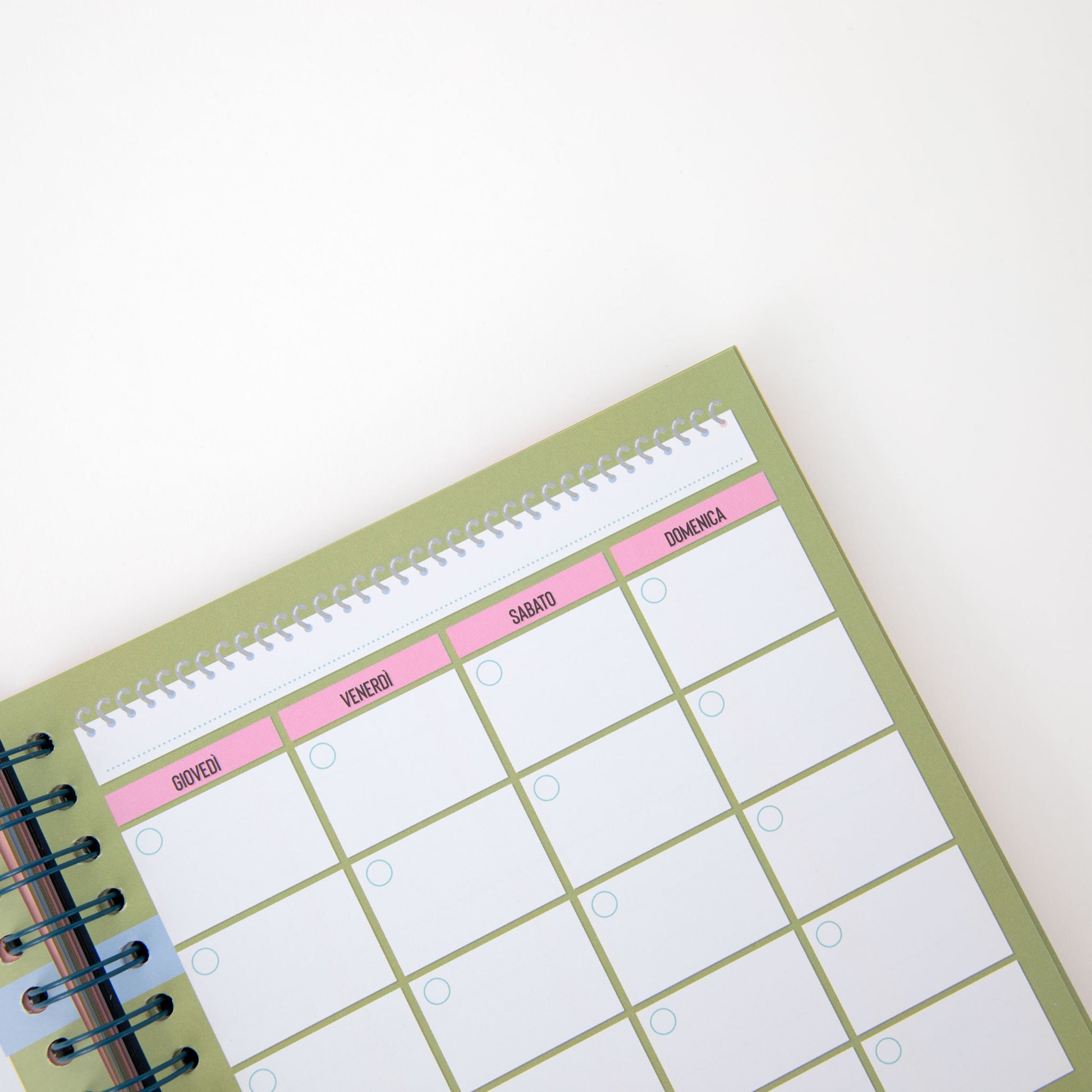 Planner pensato e progettato in modo che gli studenti ottengano le massime prestazioni possibili. Contiene suggerimenti, frasi motivazionali, orari per organizzare il tempo, timetable, elenchi per annotare gli appunti...