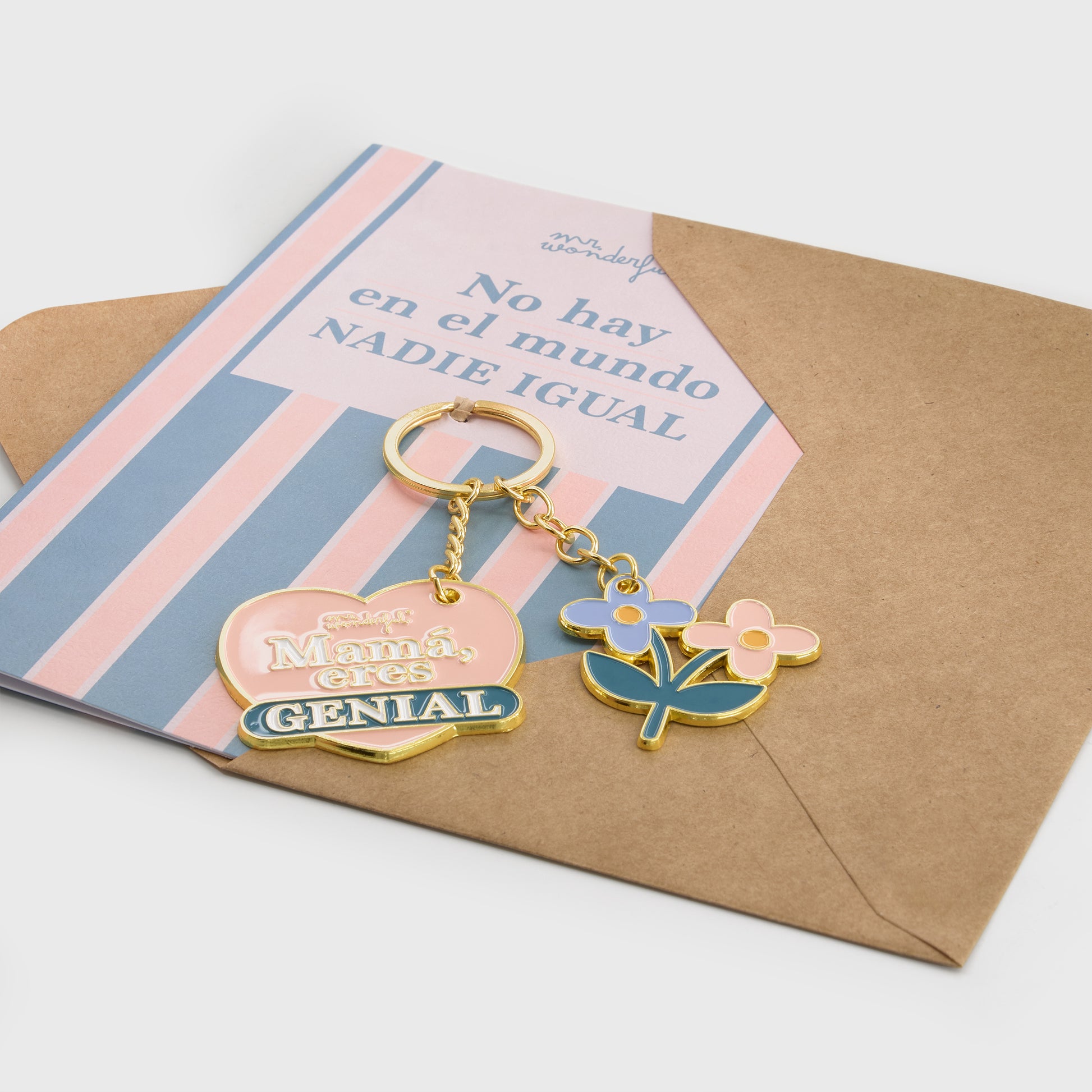 Dile a mamá lo genial que es con esta postal... ¡y completa el mensaje con el llavero que incorpora!