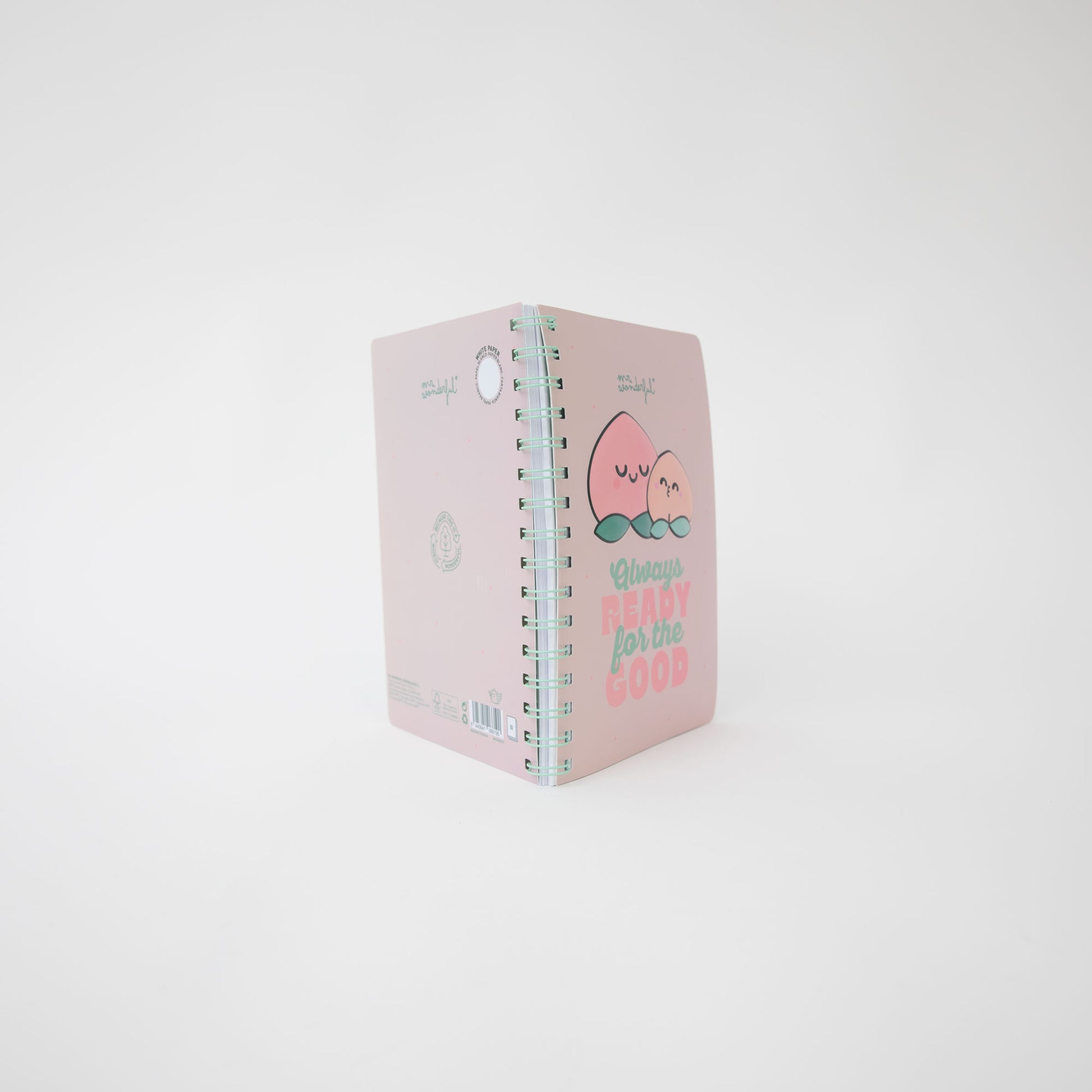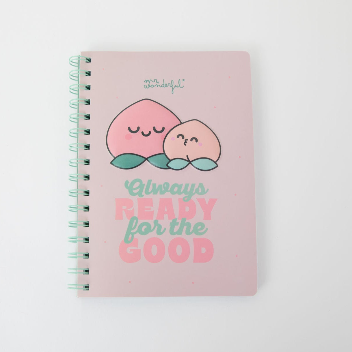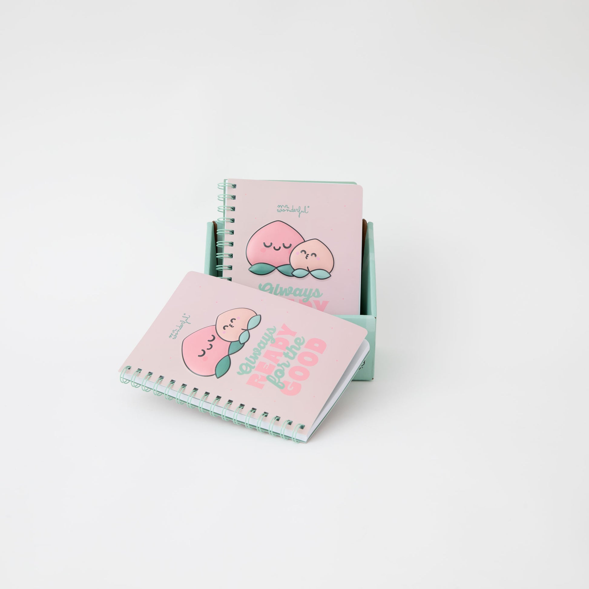 Quaderno formato A5 con una pesca Mr. Wonderful in 3D sulla copertina, rilegato a spirale. Contiene 160 pagine bianche, con certificazione FSC, che garantisce l’uso di carta proveniente da foreste gestite in modo responsabile.