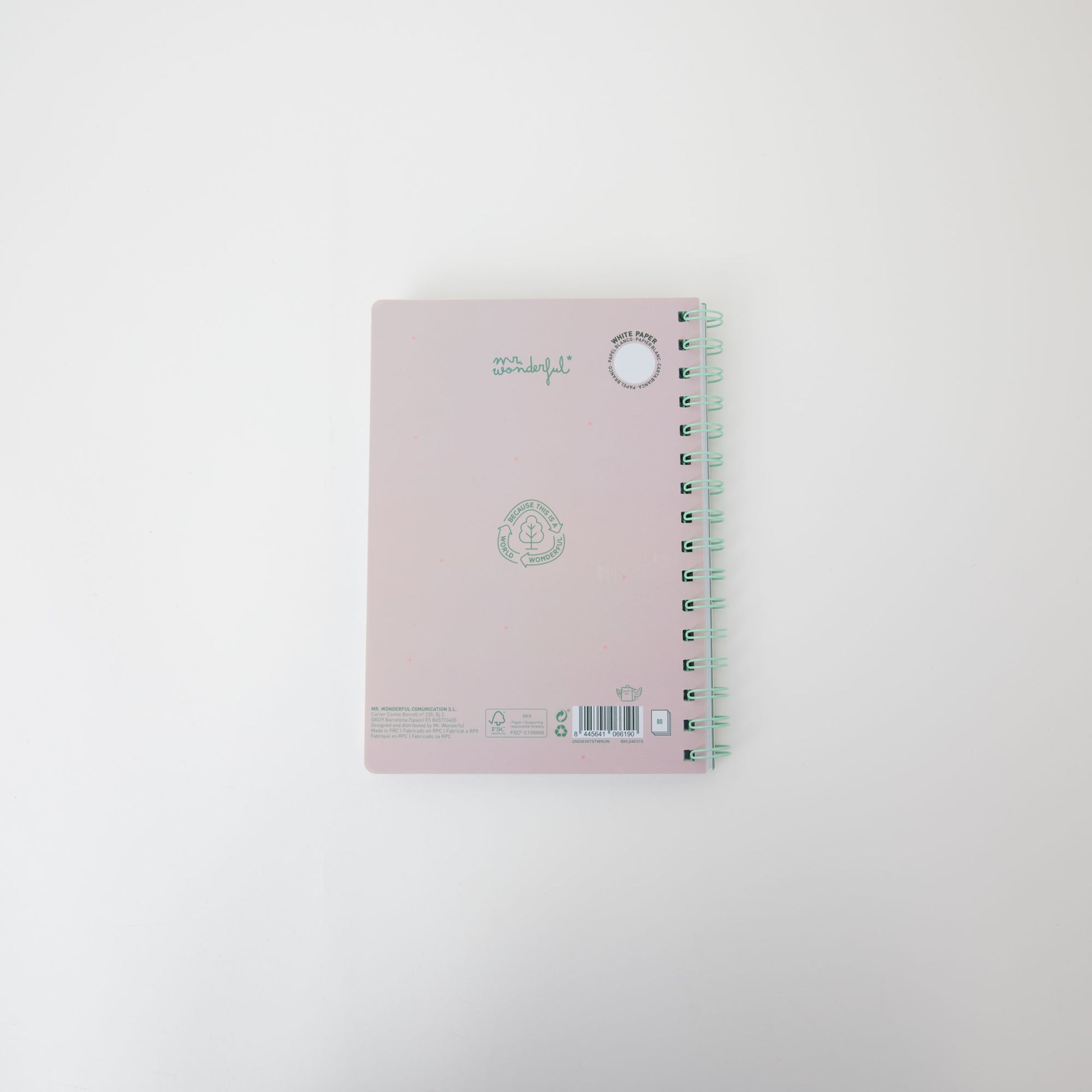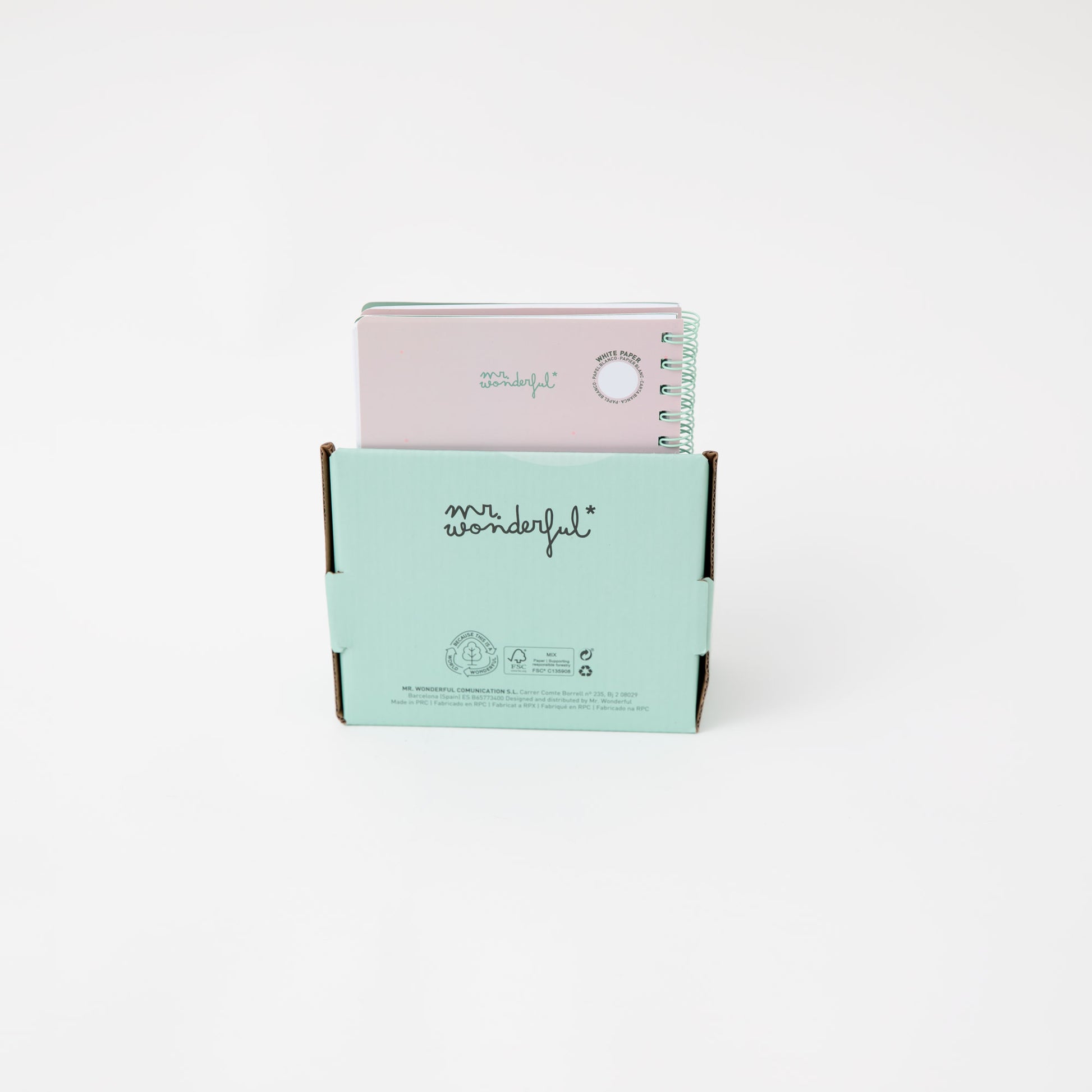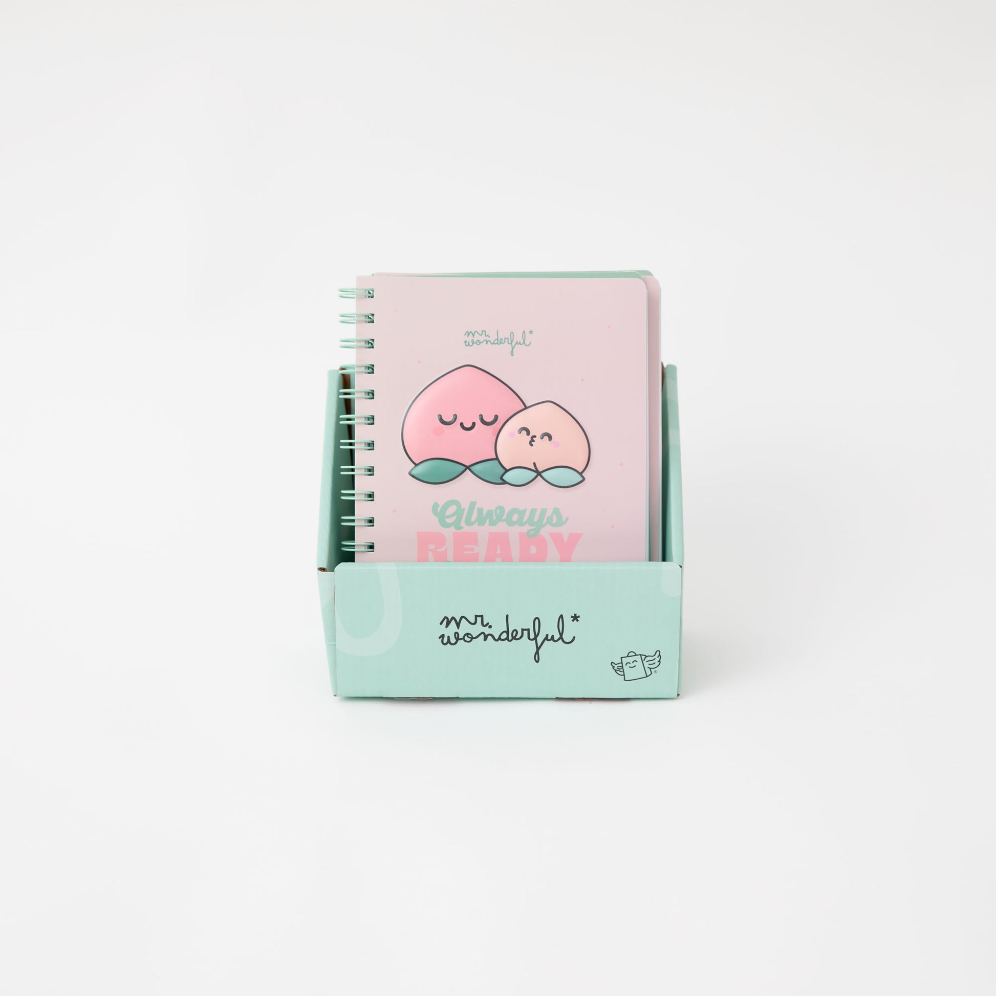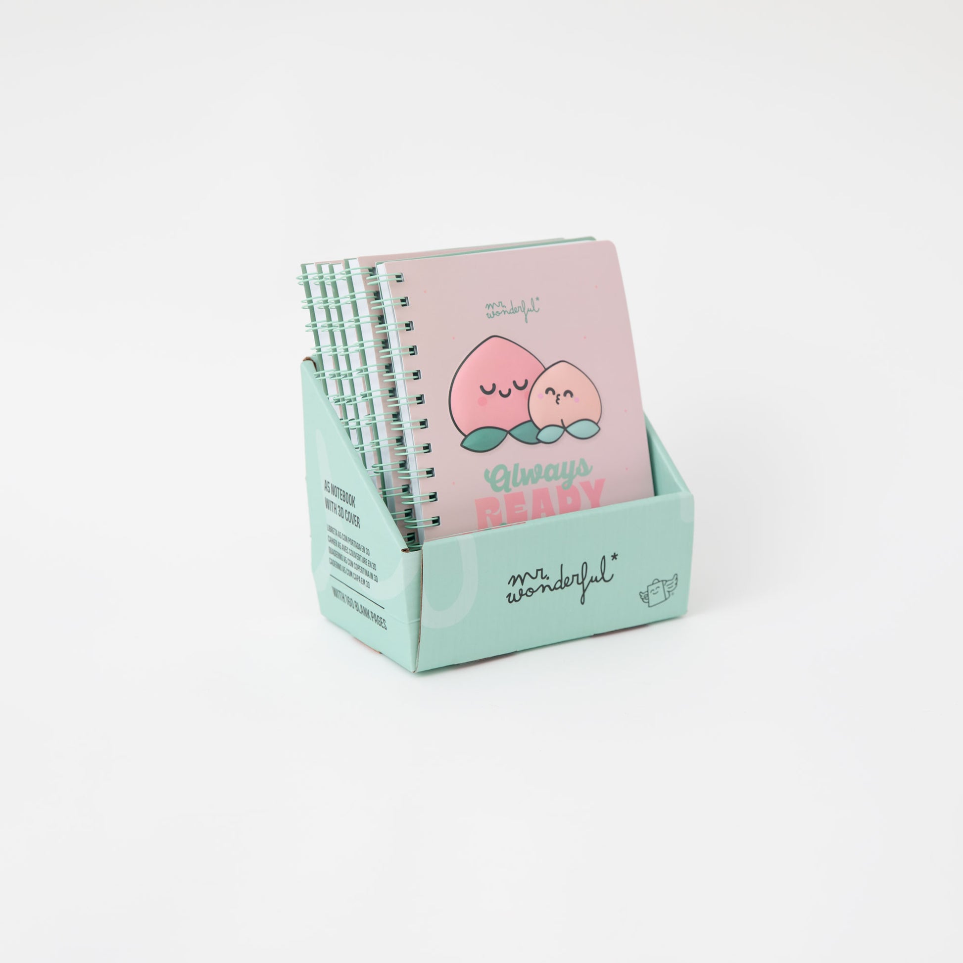 Quaderno formato A5 con una pesca Mr. Wonderful in 3D sulla copertina, rilegato a spirale. Contiene 160 pagine bianche, con certificazione FSC, che garantisce l’uso di carta proveniente da foreste gestite in modo responsabile.