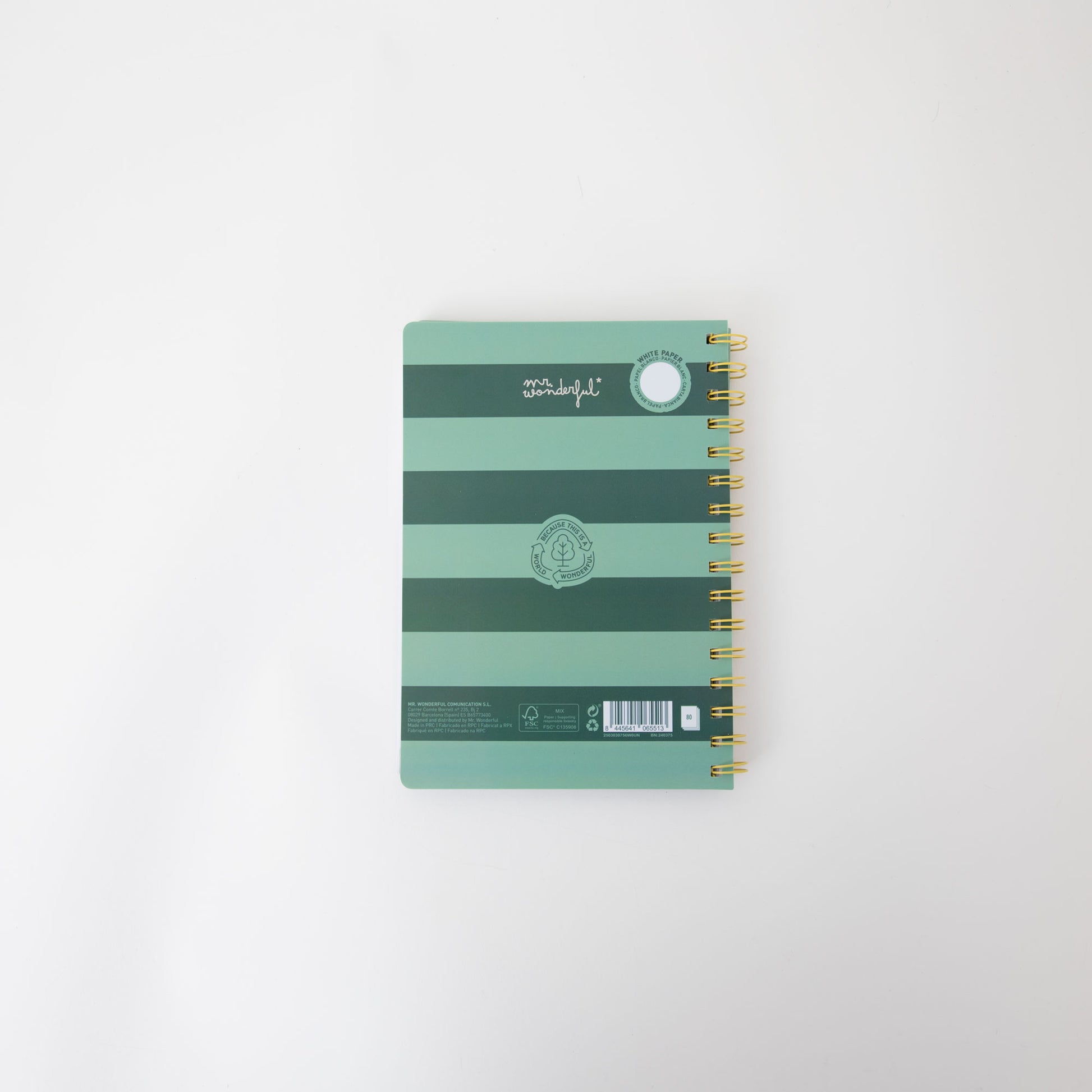 Quaderno formato A5 con una stella Mr. Wonderful in 3D sulla copertina, rilegatura a spirale. Contiene 160 pagine bianche, con certificazione FSC, che garantisce che è stato realizzato con carta proveniente da foreste gestite in modo responsabile.