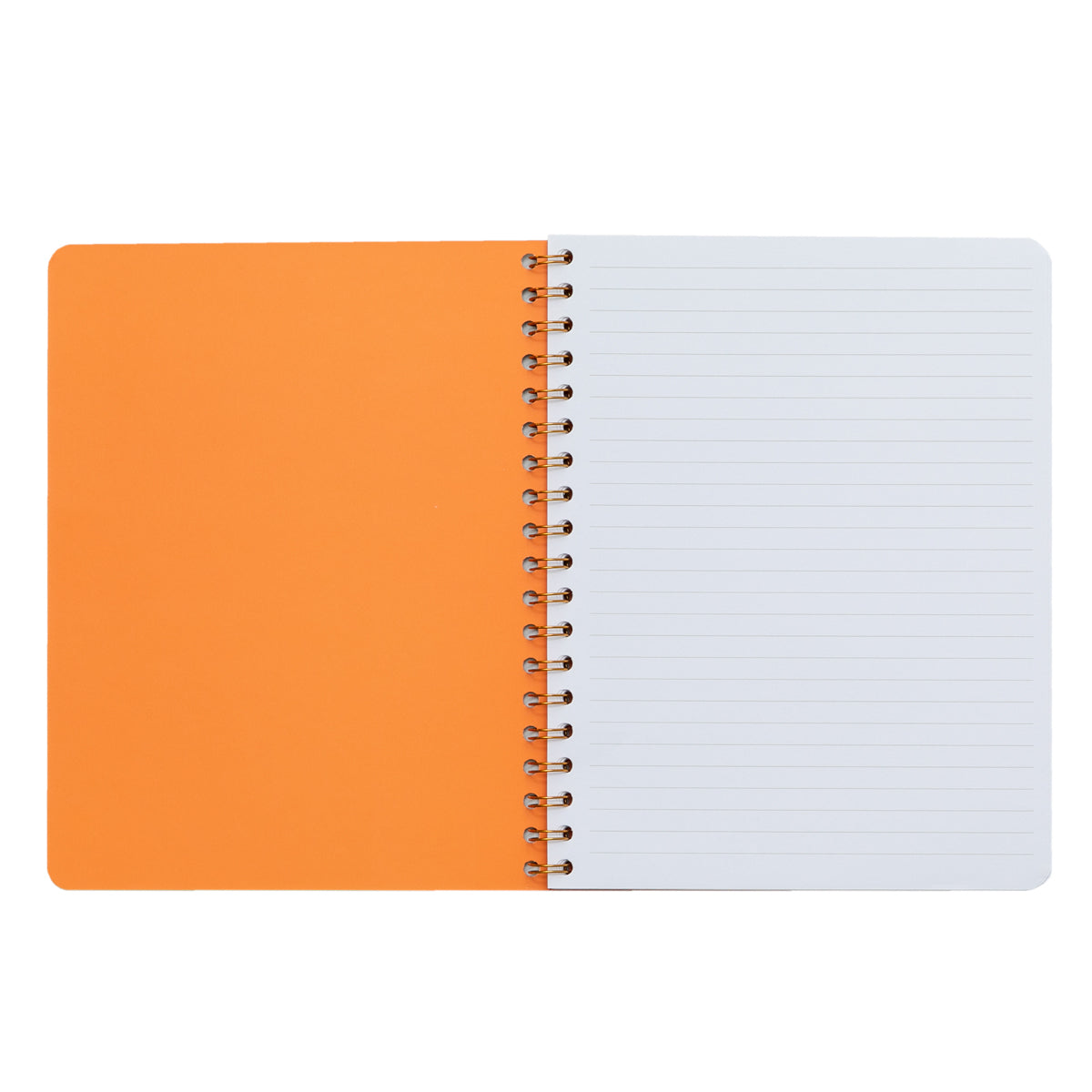 Quaderno A5 con copertina rigida e rilegatura a spirale. Organizzazione interna: a righe. Con 100 pagine da 90 gr. realizzate su carta certificata FSC che ne garantisce la provenienza da foreste gestite in modo responsabile. Include un foglio di adesivi e una tasca interna per conservare fogli e documenti.