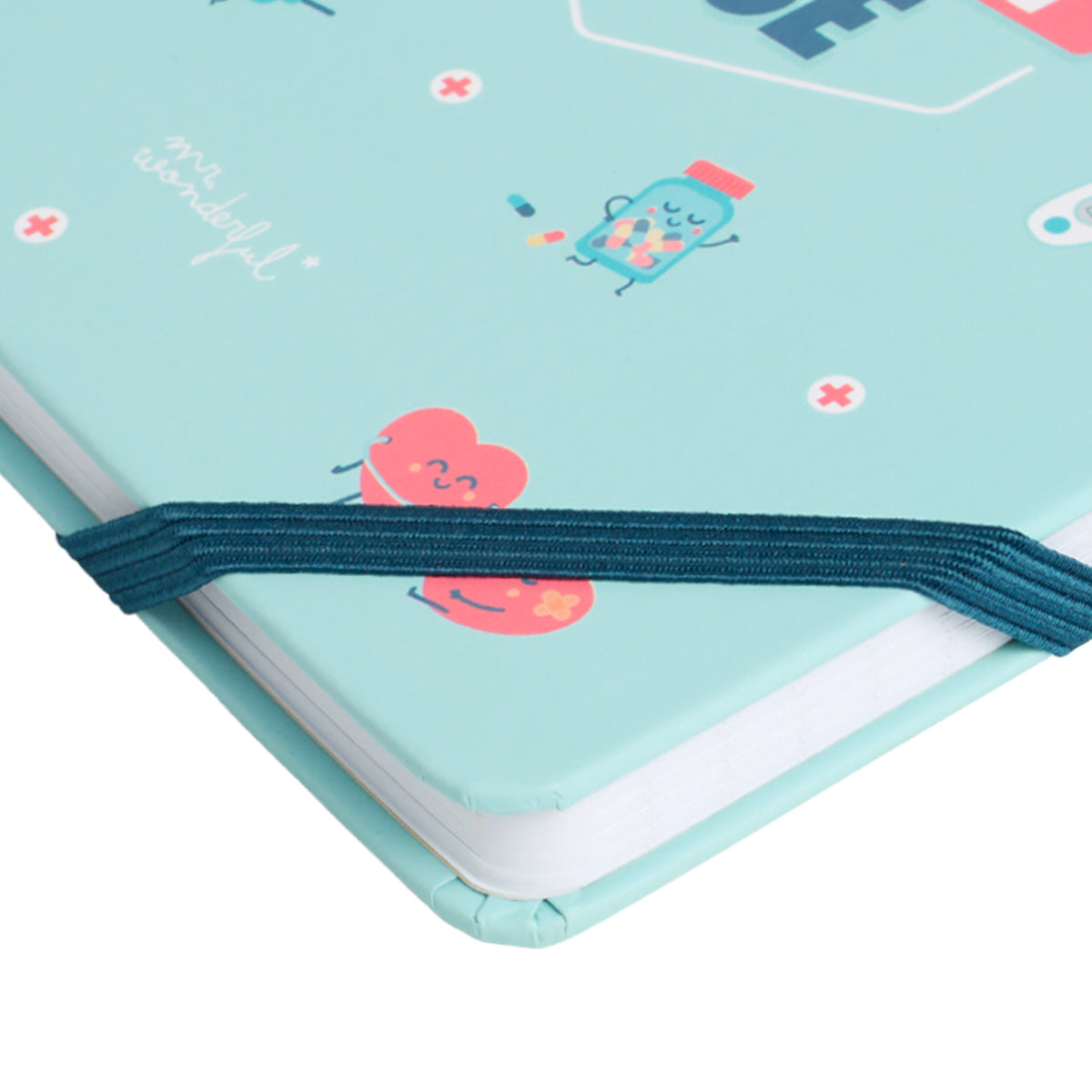 Quaderno formato A5, con rilegatura a filo, apertura a 180 º e 160 pagine a righe di carta da 100 gr. La copertina ha rifiniture soft touch e antigraffio. Il disegno è correlato con il mondo della sanità. Inoltre, dispone di certificazione FSC che garantisce che è stato fabbricato con carta ottenuta da boschi gestiti in modo sostenibile.