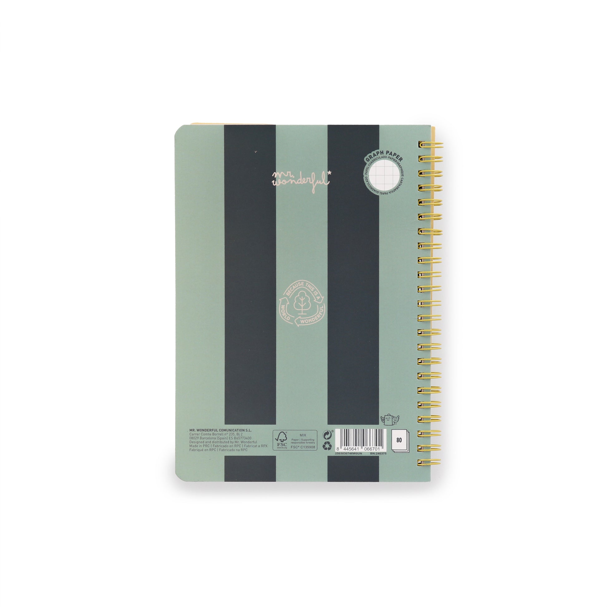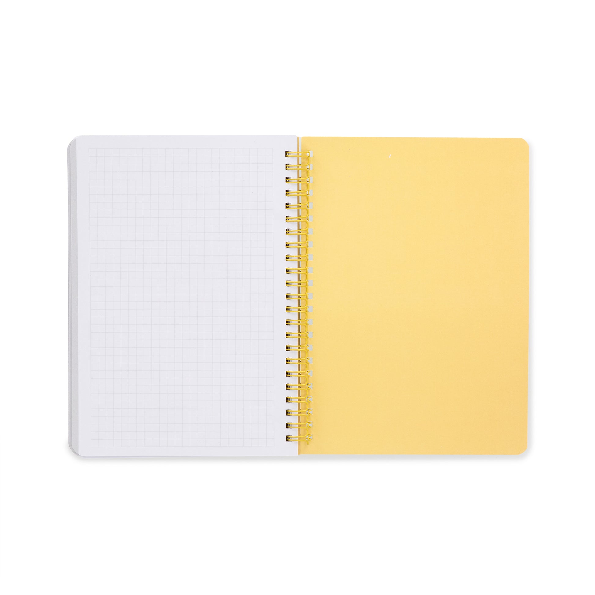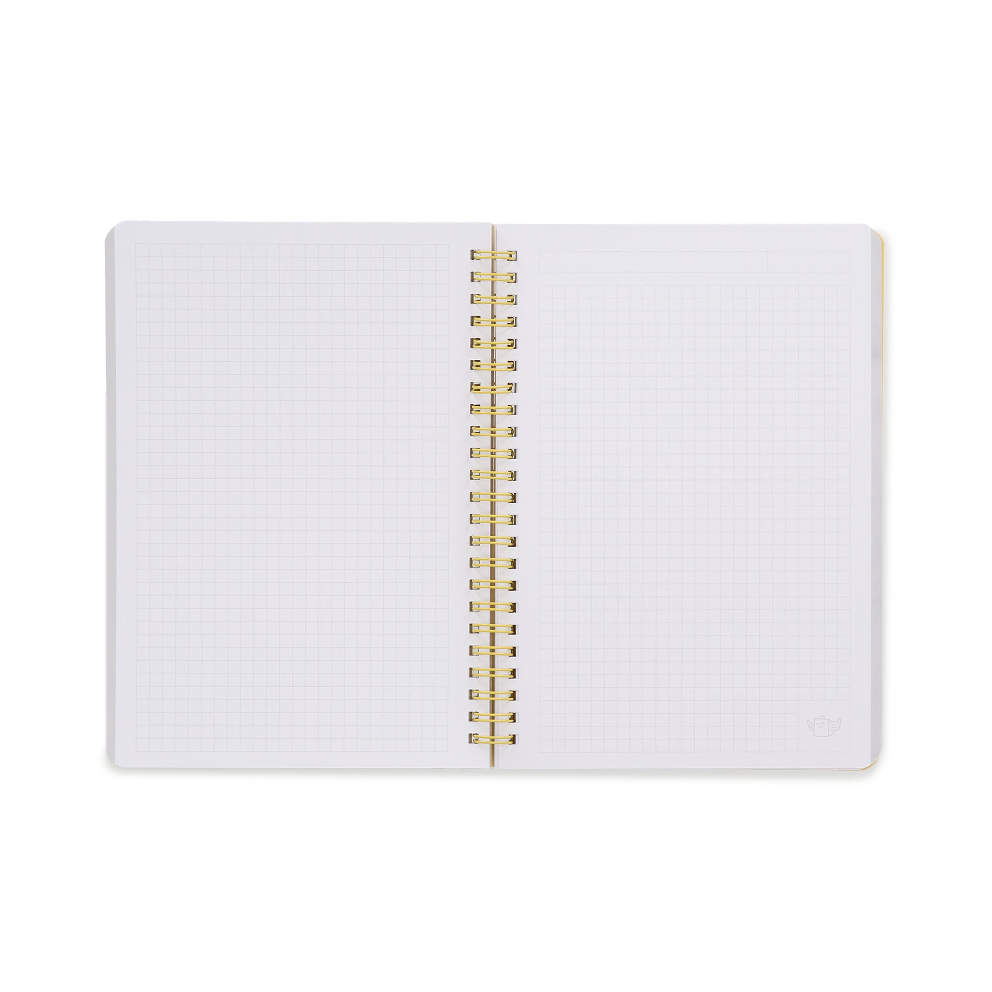 Quaderno formato A5 con rilegatura a spirale e copertina rigida. Contiene 160 pagine a quadretti da 90 g/m², con certificazione FSC, che garantisce l’uso di carta proveniente da foreste gestite in modo responsabile.