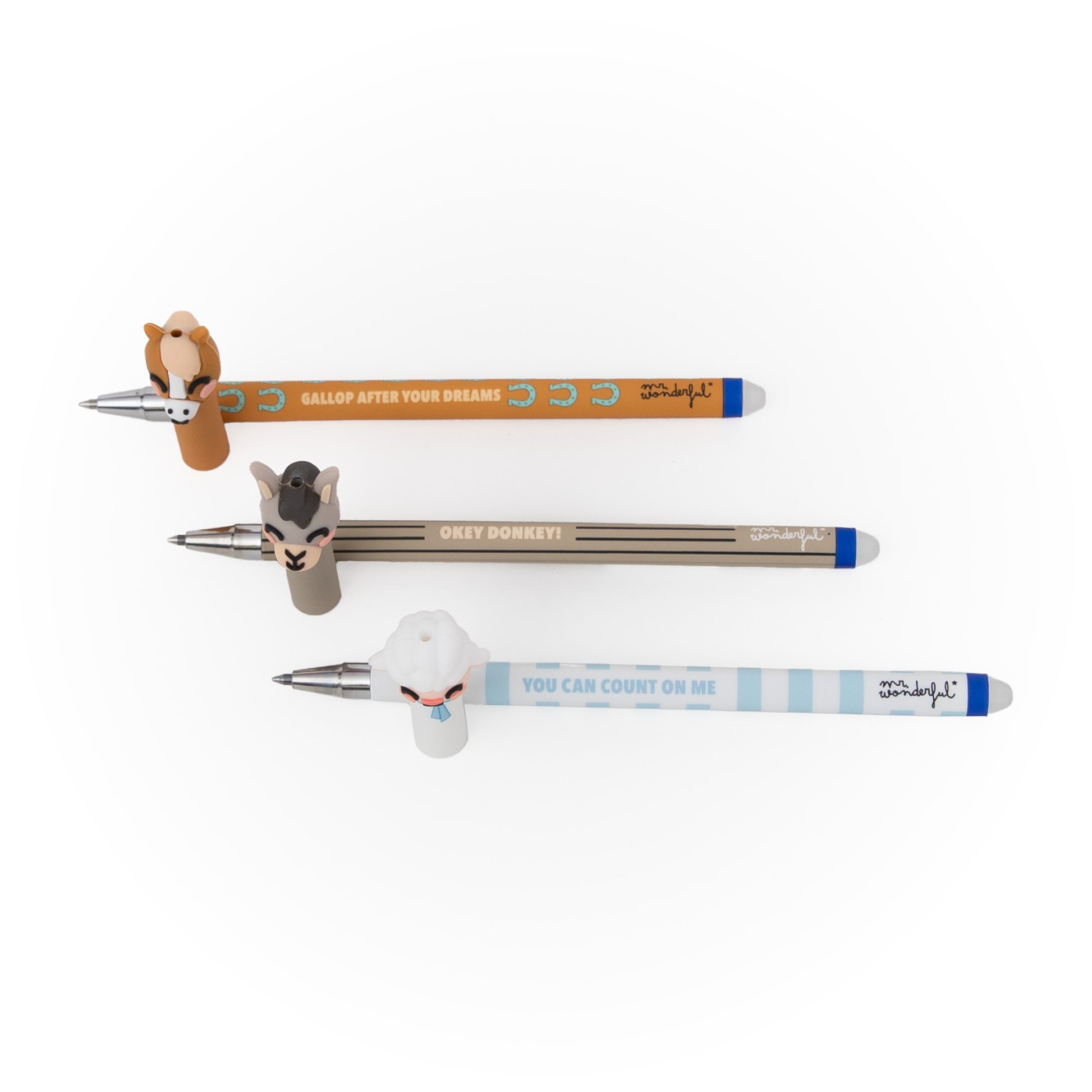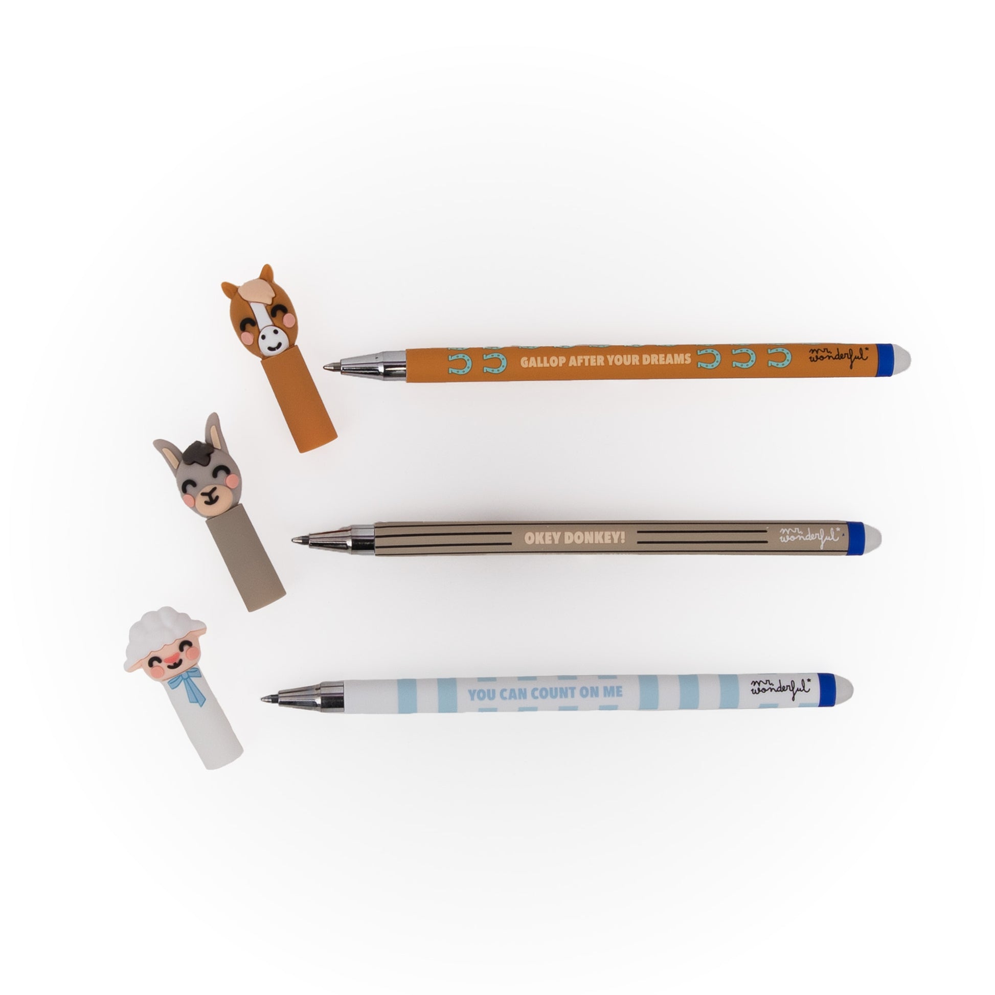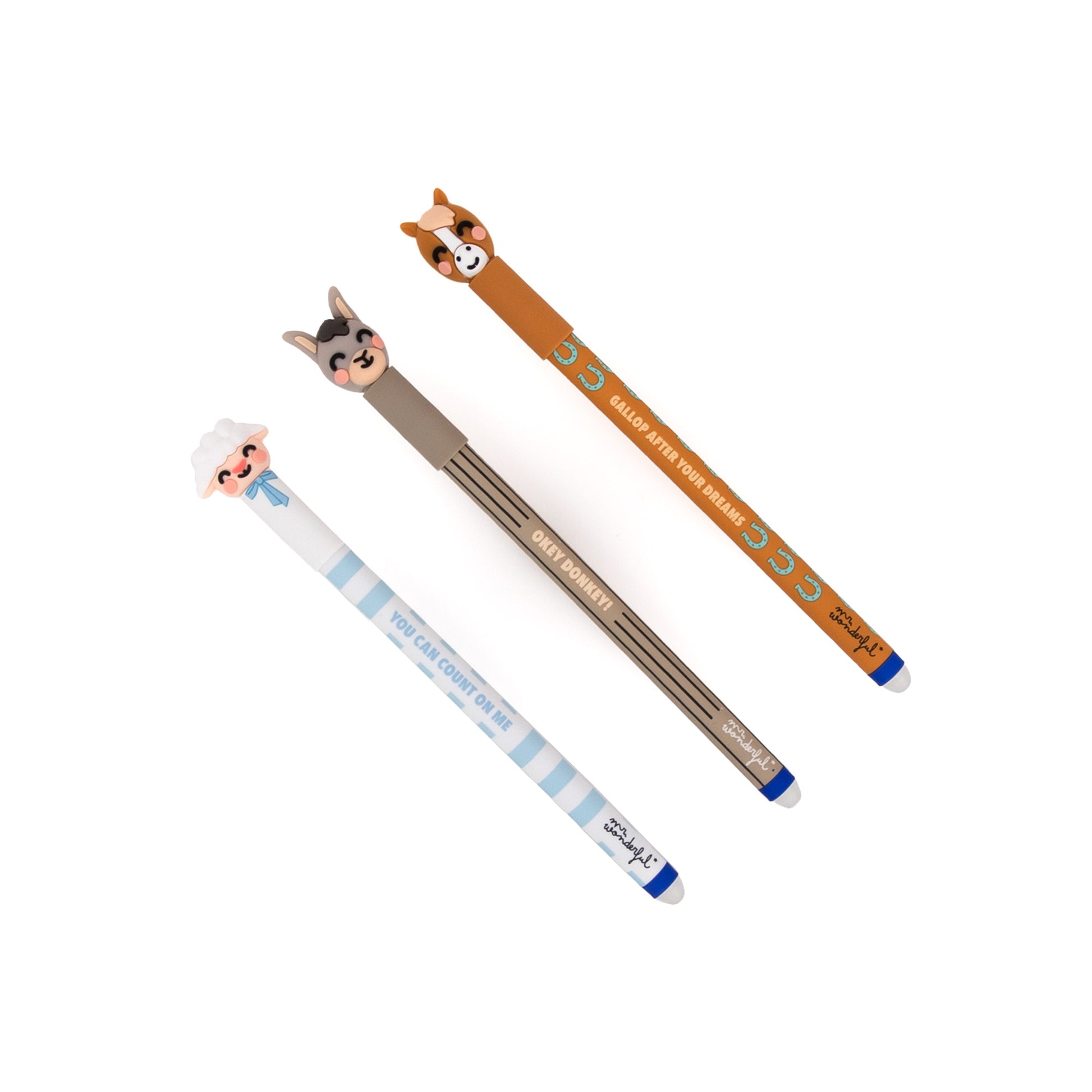 Set di 3 penne cancellabili Bo-Bo – Fattoria: Agnello, Asino e Cavallo