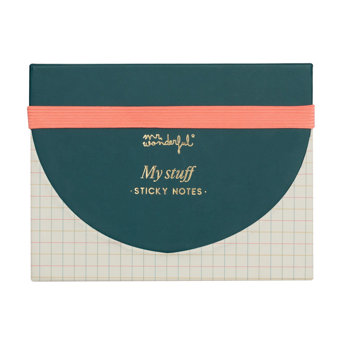 Cajita de bolsillo con cierre de imán y 5 blocs de notas adhesivas en su interior, de 70 hojas cada uno. Cuenta con el certificado FSC, que garantiza que ha sido fabricado con papel proveniente de bosques gestionados de forma responsable.