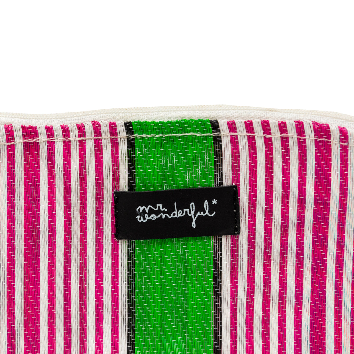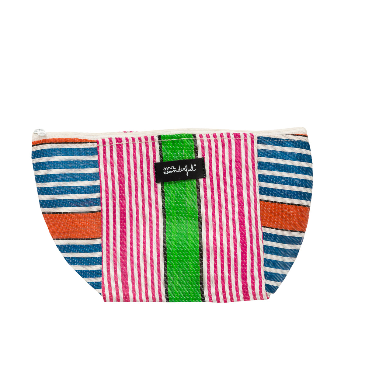 Bonito neceser, muy alegre y colorido, con cierre de cremallera. Encontrarás también la bolsa de playa a juego.