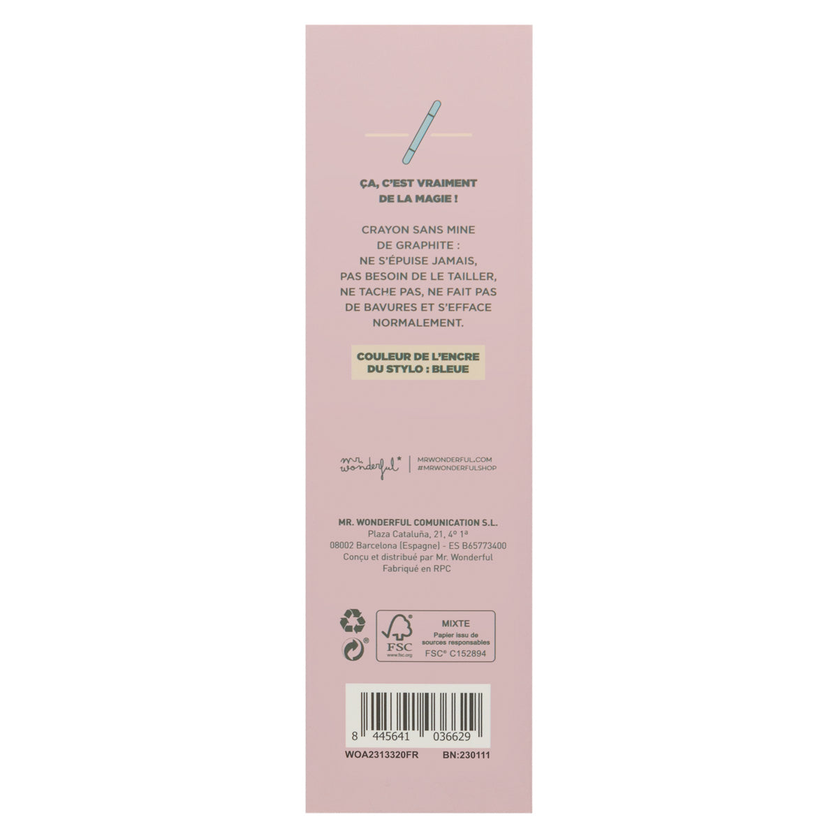 Tout ce dont tu as besoin en un seul produit : un stylo bleu d'un côté et un crayon à papier infini de l'autre !