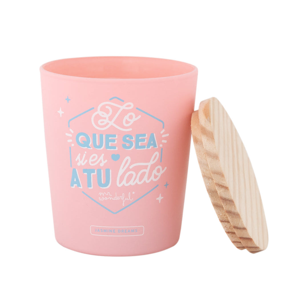 Que sea cerquita de tu persona favorita, lo demás no importa. Ya puede ser en casa o en la Conchinchina, el lunes a primera hora o el viernes justo antes de empezar el fin de semana, rodeados de gente o solos tú y ella, lo que está claro es que el mejor momento del día es: juntos. Por eso, te proponemos un plan que sabemos de sobras que no podrás rechazar por nada del mundo: tú, tu amorcete y esta vela tan bonita. El dónde y el cuándo lo decides lo dejamos a tu elección porque, como decíamos, sabemos que eso no es lo más importante. Una maratón de tu serie favorita, una cena romántica en casa o un día entero en pijama y en modo avión... Todo es mucho mejor cuando os tenéis alrededor y, si a eso le sumamos la luz y el aroma a Jasmine dreams de esta vela realizada con cera 100 % vegetal, pues todavía más fenomenal. Además, su envase de vidrio con mensaje a tope de amor del bueno y su tapa de madera hacen que siempre se mantenga intacta y conserve su olor como el primer día. De esta manera, vosotros solo os tendréis que preocupar de encontrar el rincón perfecto para ella y de encenderla siempre que queráis disfrutar de vuestra compañía.