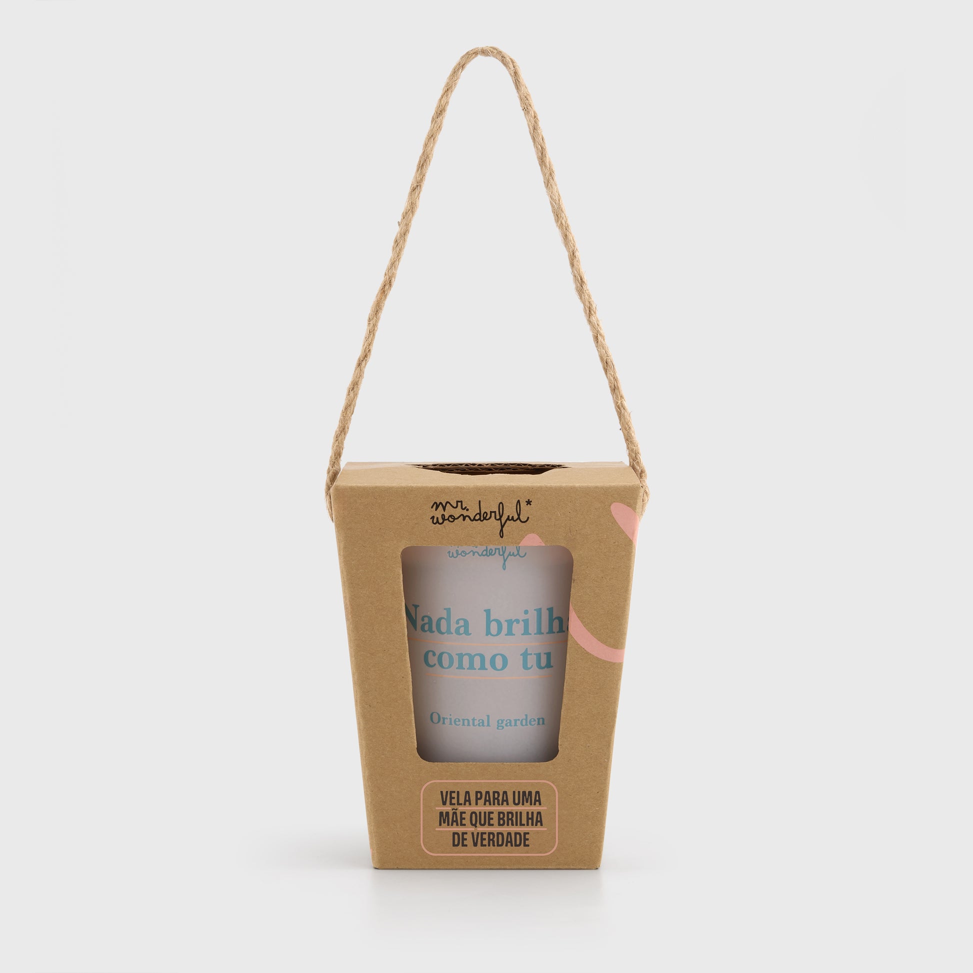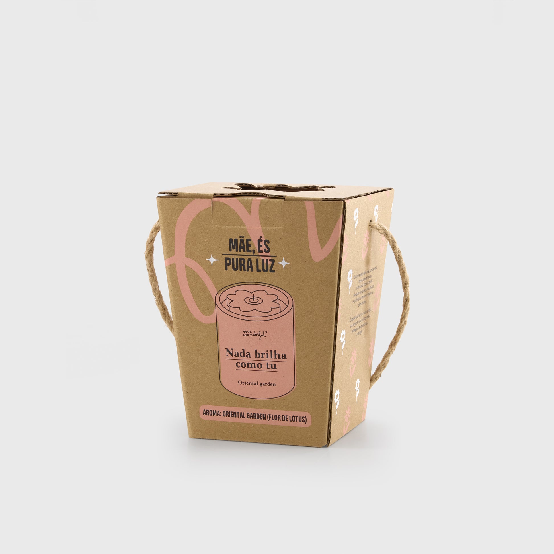Vela perfumada feita de cera vegetal, apresentada num recipiente de cerâmica. A mensagem é ideal para oferecer à mãe, mas é suficientemente aberta para ser oferecida noutras ocasiões e a outros tipos de pessoas. Aroma: Oriental garden (flor de lótus).
