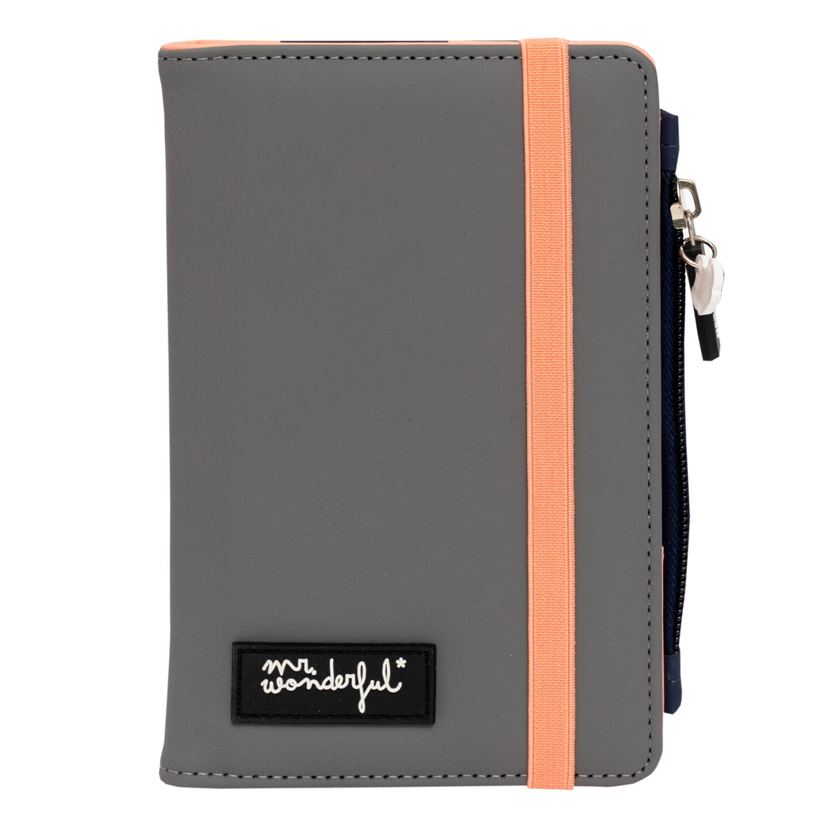 Pack Viaggio grigio – Portachiavi con cavi per cellulare + porta-passaporto + bottiglia termica