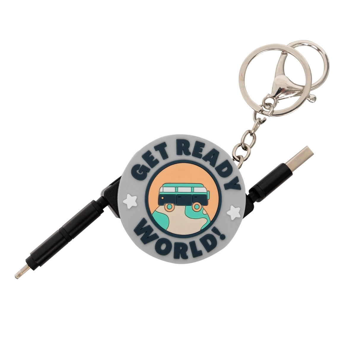 · Portachiavi con cavi per caricare il cellulare grigio – Get ready, world!