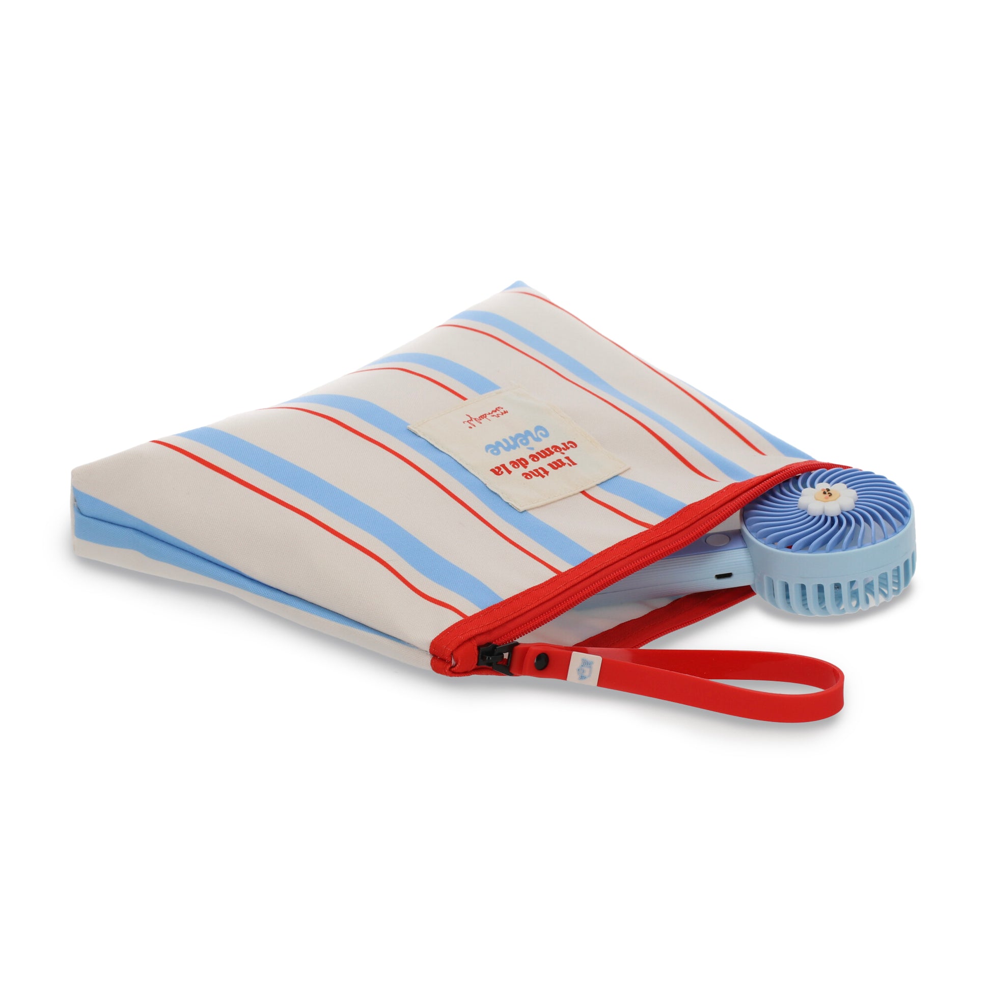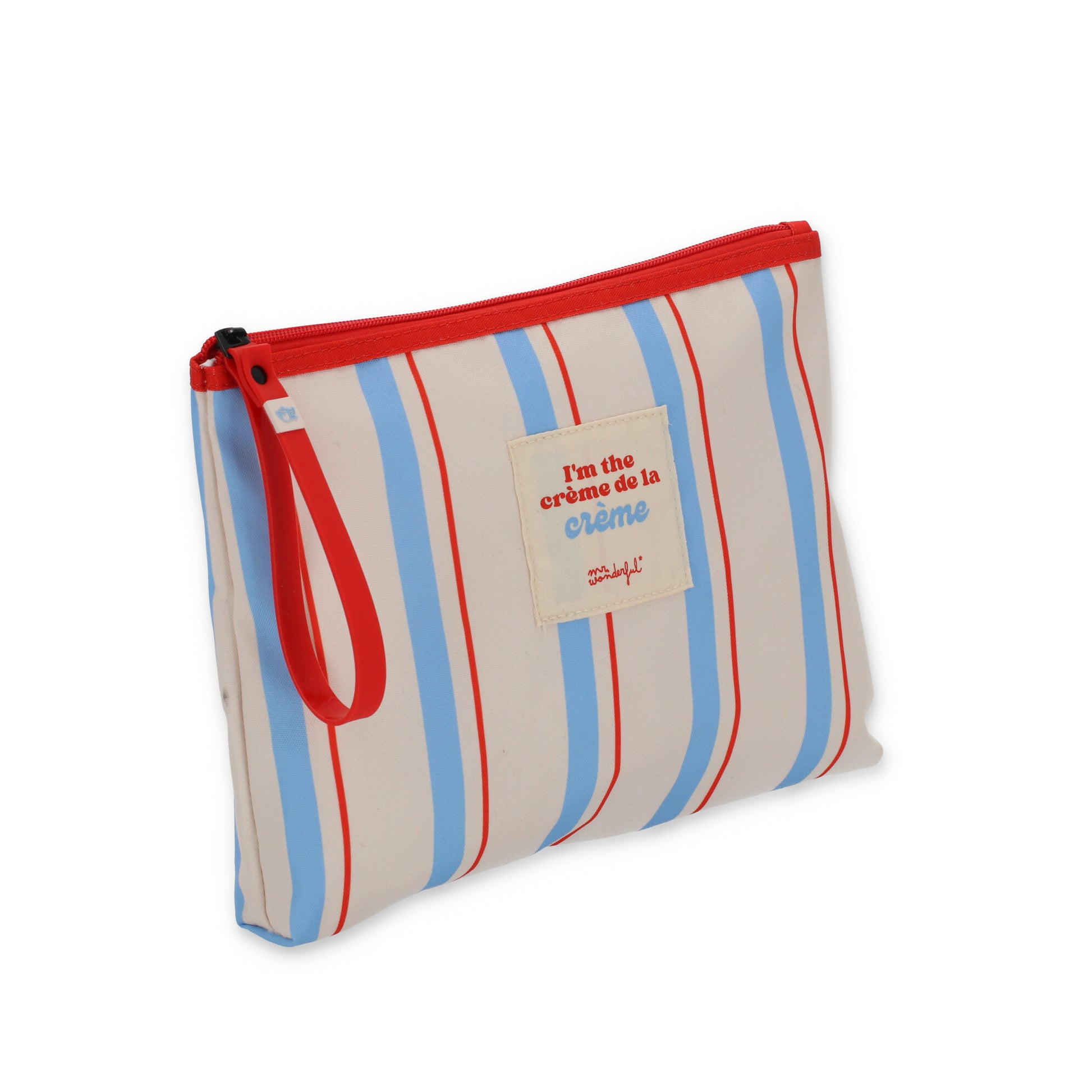 Waterproof toiletries bag blue, red and beige stripes - I'm the crème de la crème