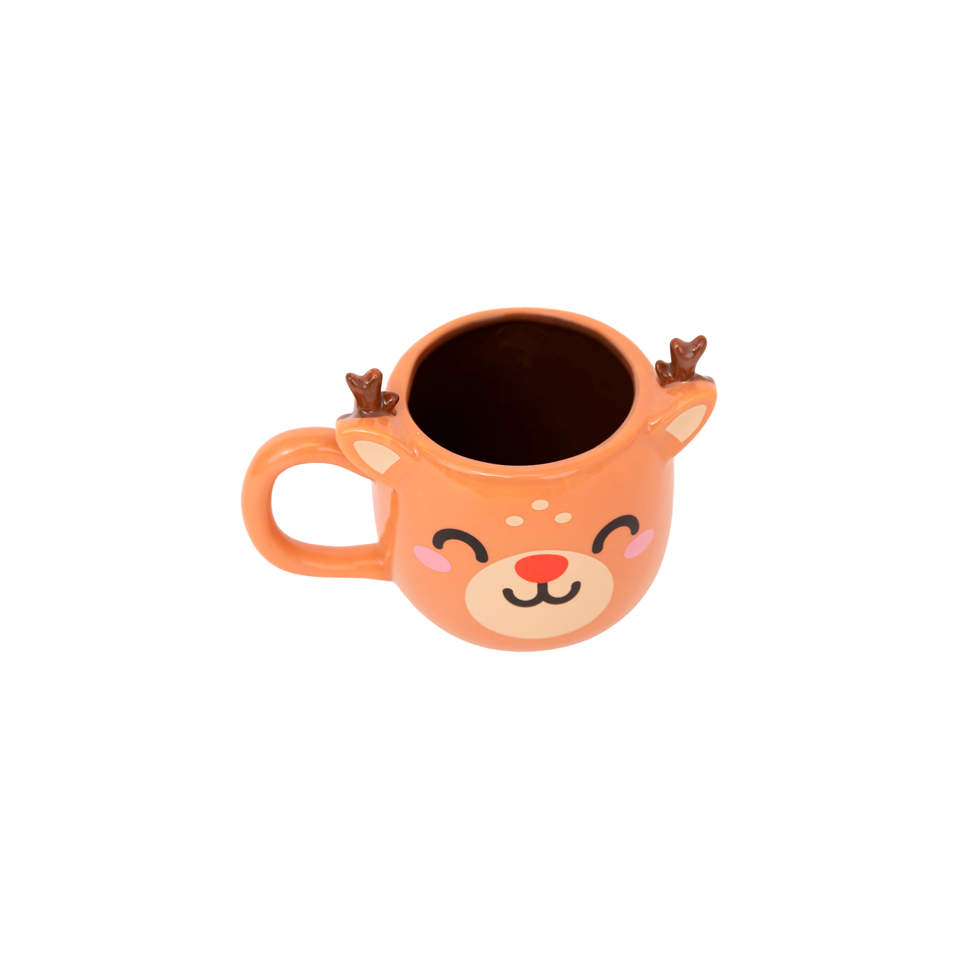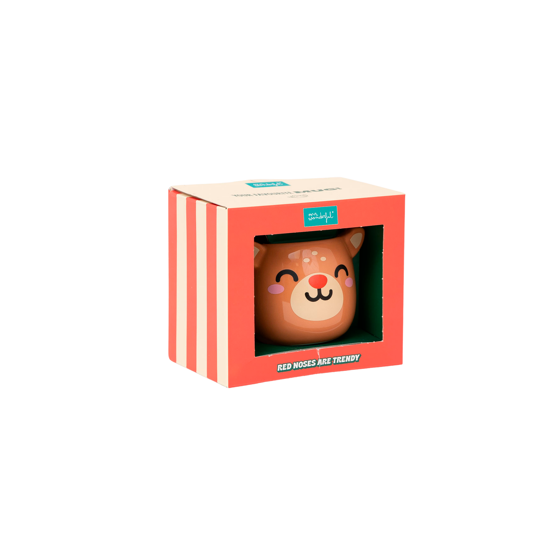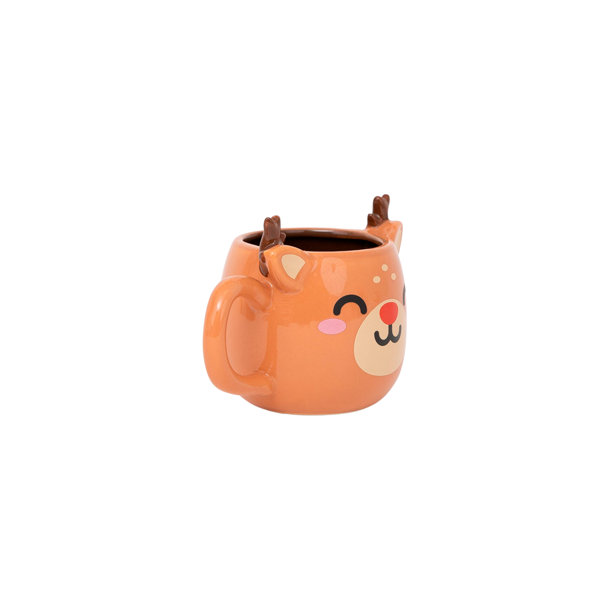 Taza realizada en cerámica, en formato 3D, con forma de cabeza de reno navideño. Capacidad de la taza: 35 cl.