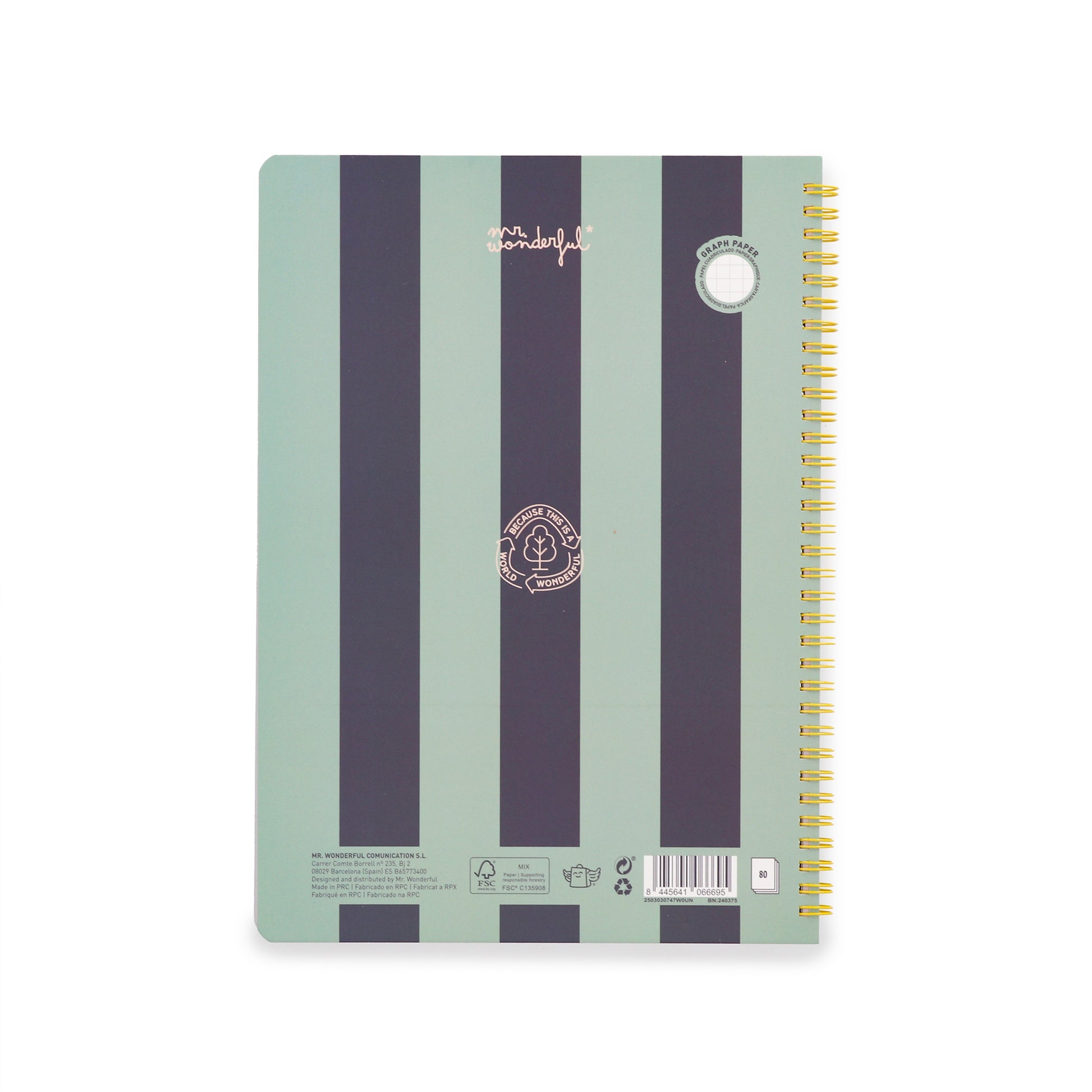 Libreta de tamaño A4 con encuadernación en espiral y tapa dura. Con 160 páginas cuadriculadas de 90gsm, con certificación FSC, que garantiza que el papel proviene de bosques gestionados de forma responsable.